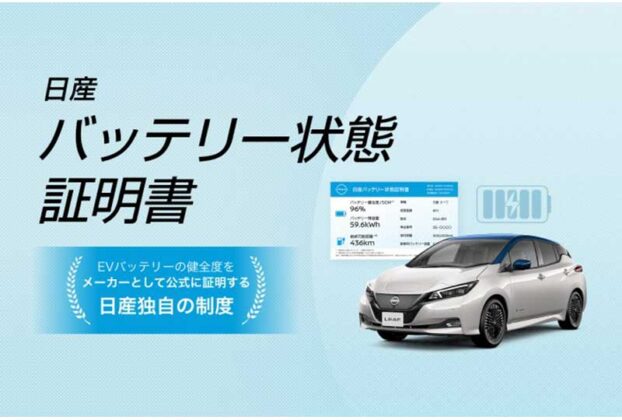 日産自動車、中古EVのバッテリー健全度を証明する「日産バッテリー状態証明書」のトライアル運用を開始