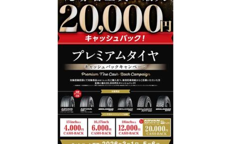 横浜ゴムは2月27日、自系列タイヤショップ「タイヤガーデン」「グランドスラム」において「プレミアムタイヤキャッシュバックキャンペーン」を実施すると発表した。対象期間は3月1日から5月6日まで。 プレミアムタイヤキャッシュ […]