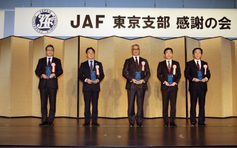 続きを読む日本自動車連盟(JAF)東京支部(舟橋竹彦支部長)は1月24日、新規個人会員獲得等に貢献した販売会社とリース会社、販売会社の営業スタッフをJAF本部および東京支部から表彰する、JAF東京支部感謝の会を開催した。(トップ写 […]