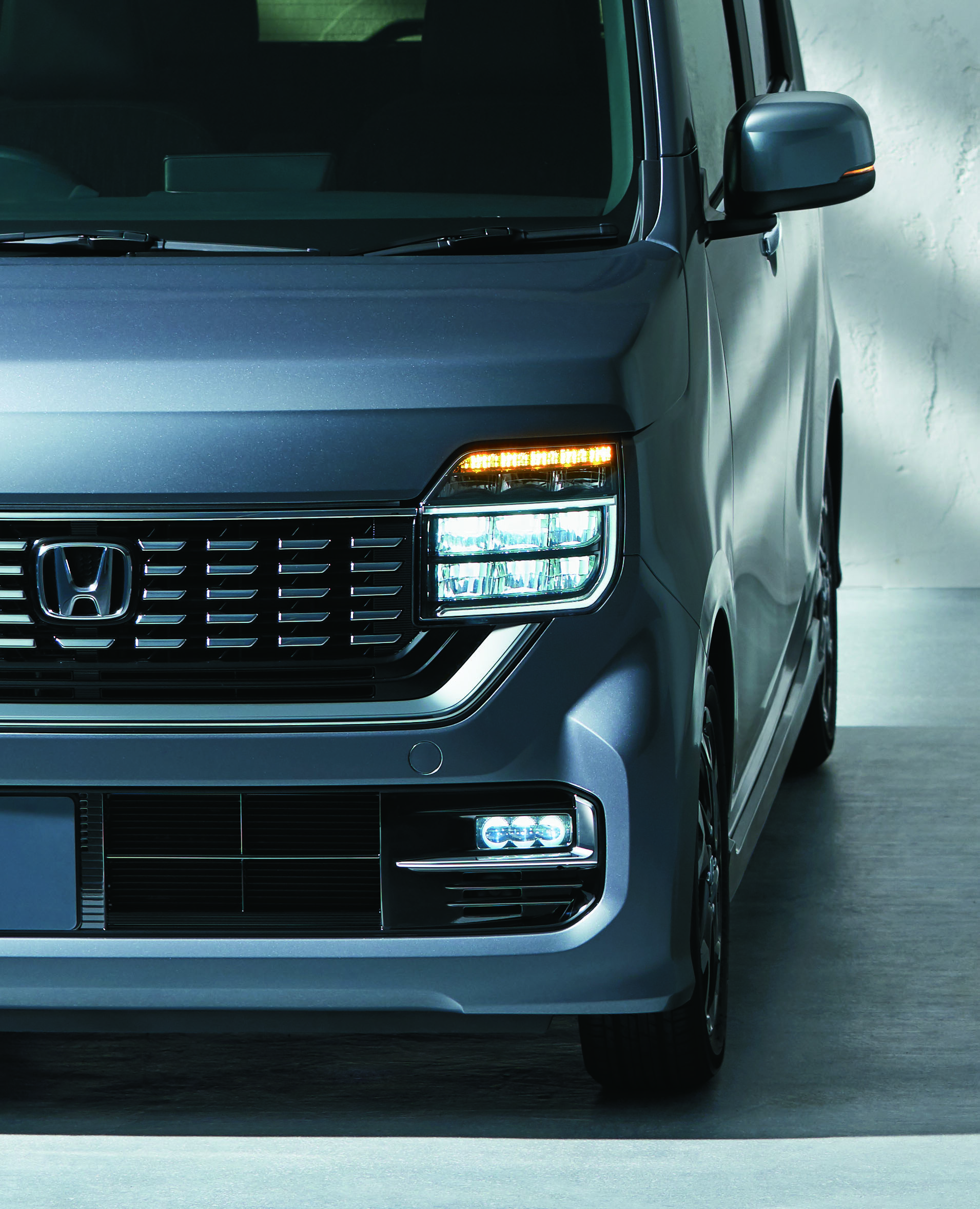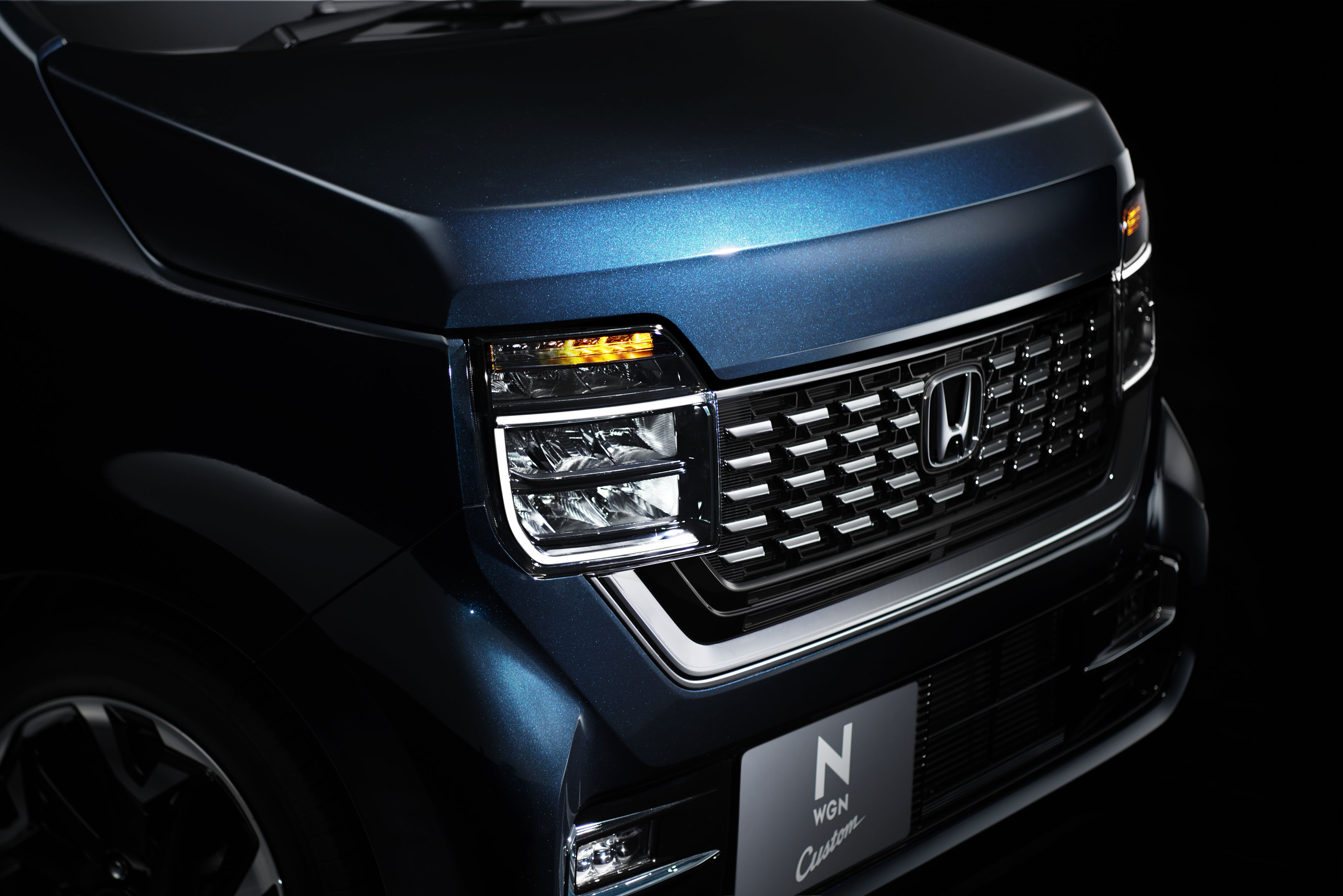 一方、カスタムは、N-WGNの基本的なデザインを踏襲しながら、エクステリアは力強いたたずまいをより大胆に強調する前後バンパー造形や、細部まで精巧に形作ったヘッドライトやグリルが、質感の高さを醸し出す。
