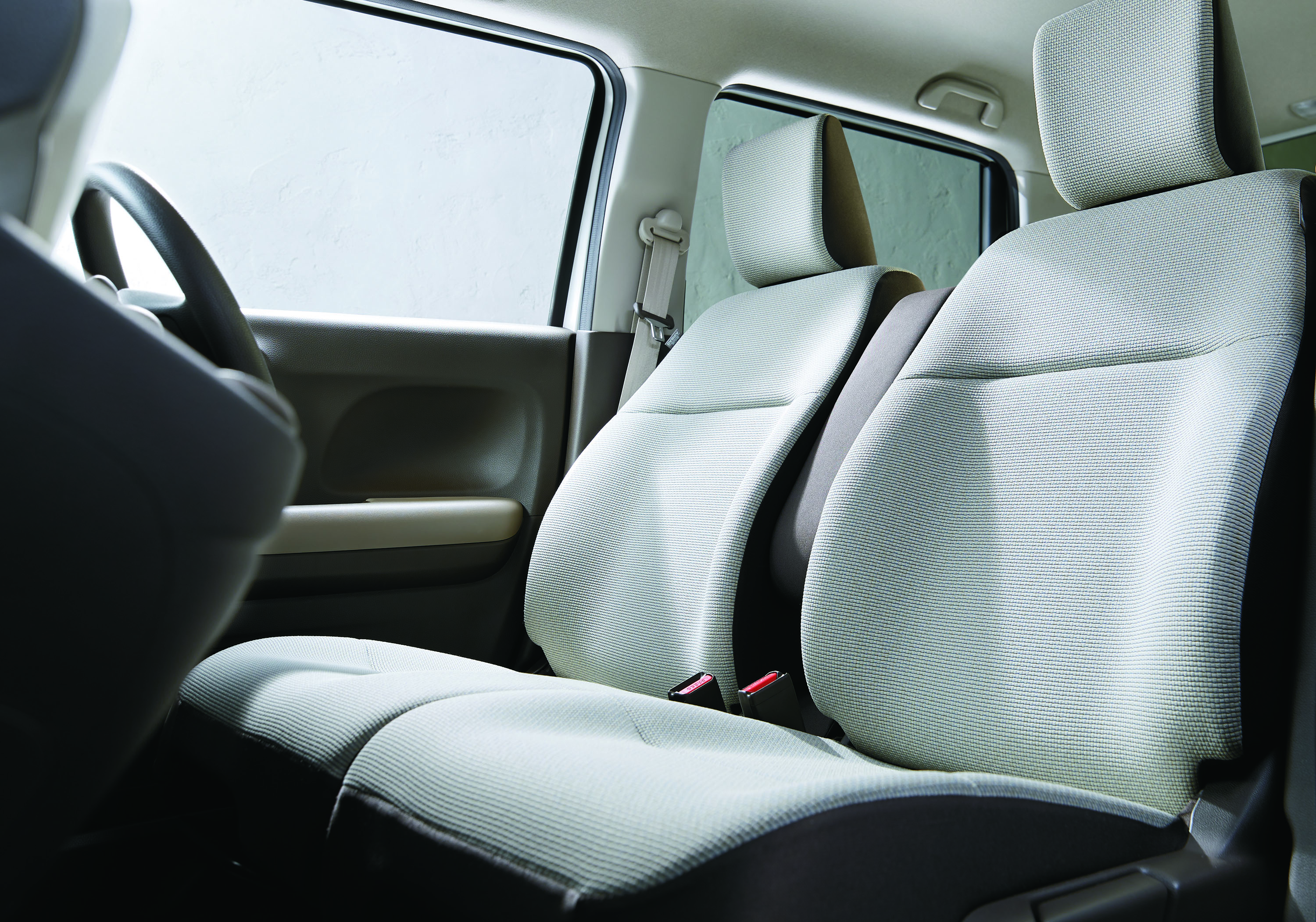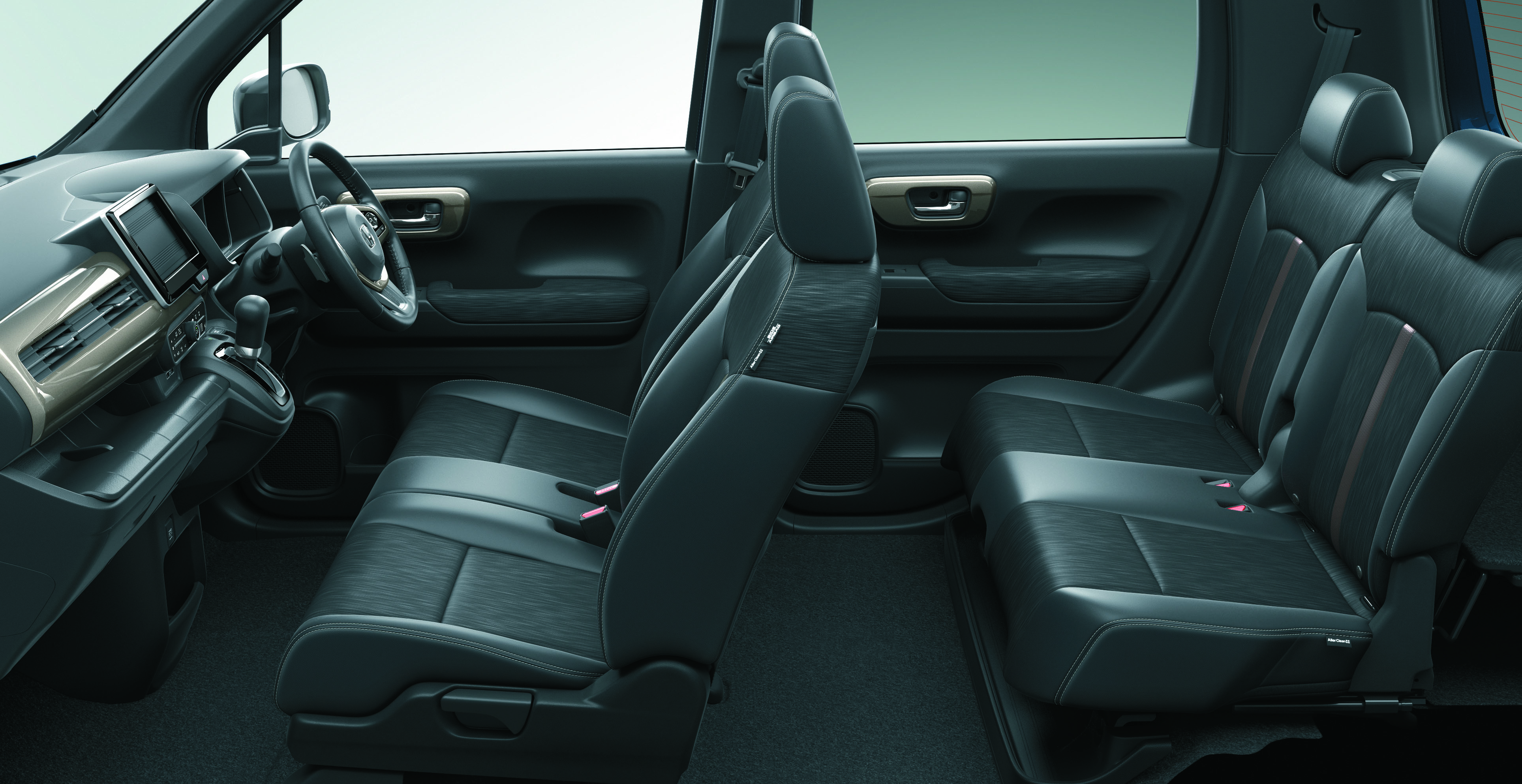 運転席周りでは、体格を問わず、より多くのドライバーが適切な姿勢で運転しやすいドライビングポジションを確保できるように、運転席ハイトアジャスターや、同社の軽で初となるテレスコピック&チルトステアリング機構を標準装備。加えて、足を伸ばした状態で運転姿勢がとれるように運転席の座面と床の落差を先代モデルから小さくしたことで、運転時の疲労軽減に貢献する。