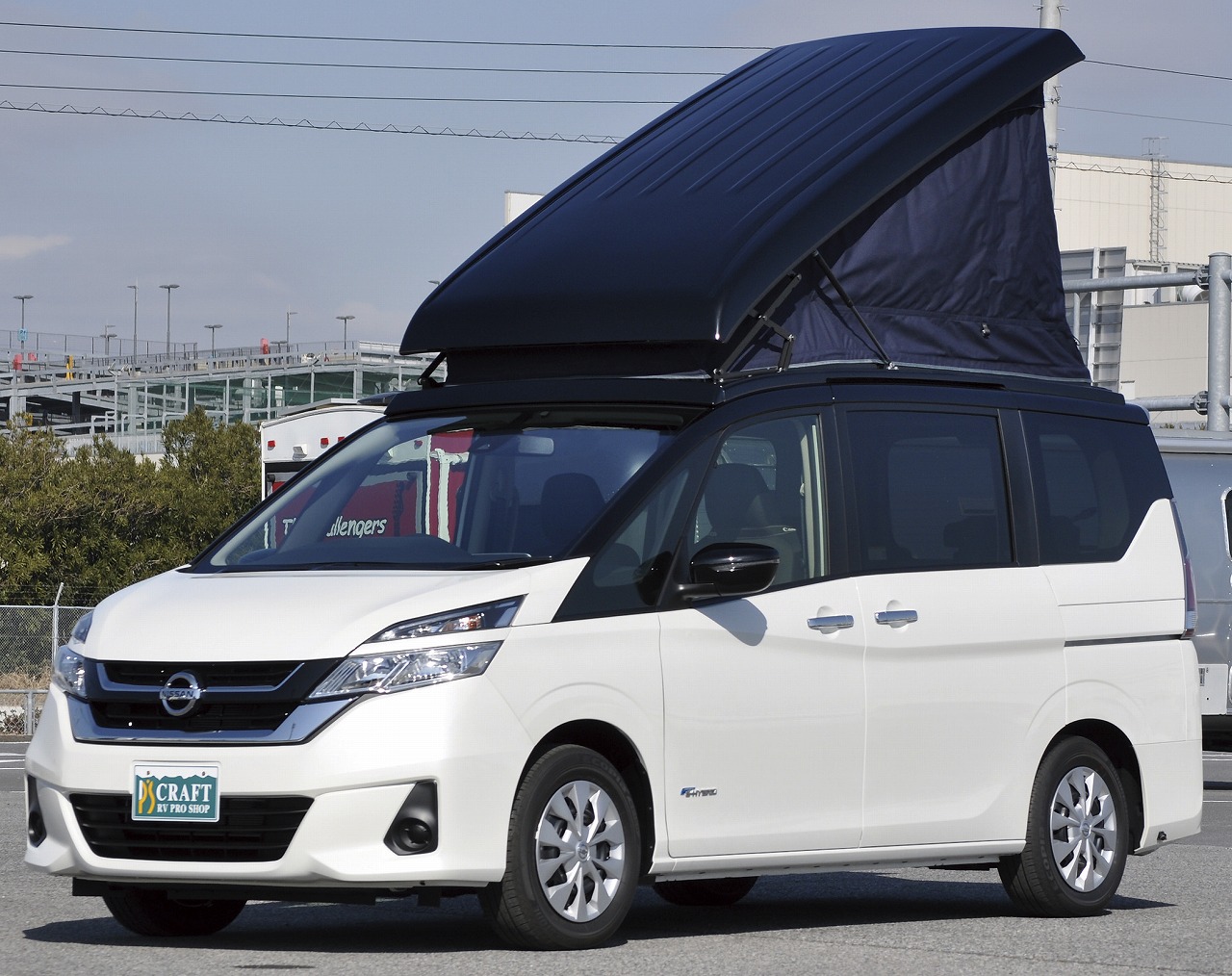 日産車をベースにオリジナリティにあふれたモデルを製造する「日産ピーズフィールドクラフト」は、セレナをベースにオリジナルのポップアップルーフを搭載した車中泊モデル「セレナ・P-SV」を出展する。