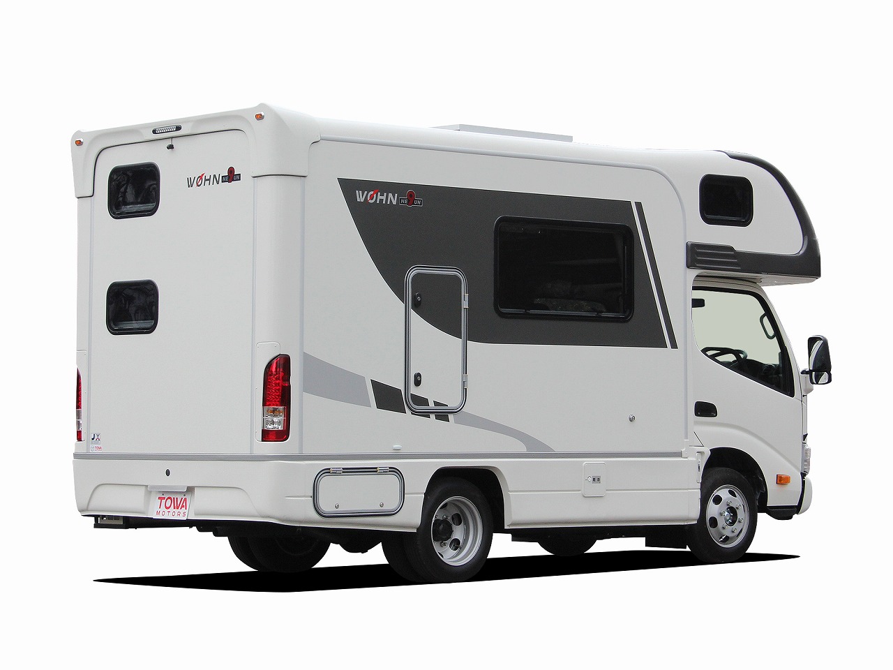 軽キャンパーからバンコン(バンコンバージョン)、キャブコン(キャブコンバージョン)、輸入モデルまで充実したラインナップを持つ「東和モータース」からは、人気の室内レイアウト、リヤ常設二段ベッドや対面式ダイネットを採用したキャブコン「ヴォーンノイン・R2B」を出展する。