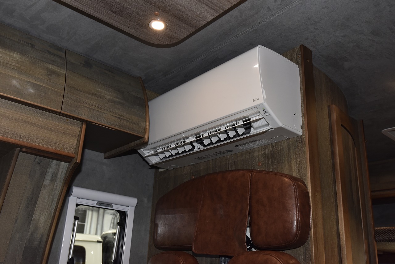 電装系は2400Whのリチウムイオンバッテリー、2500Wインバーターを標準装備。電子レンジや冷蔵庫だけでなく、ルームエアコンの稼働も可能とすることで、FFヒーターなどと合わせて季節を問わず快適な室内空間を実現した。