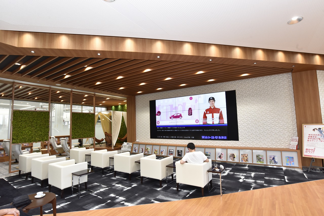 今回紹介するショールームは、7月末にグランドオープンしたばかりの「富山トヨタ魚津店」。富山トヨタの中でも最大規模となった新店舗は、グループ会社の富山トヨペット、ネッツトヨタノヴェルとやまとの提携店舗として3チャネルの取扱車を販売するとともに、社員食堂や託児所といった、一般的なカーディーラーには無い施設も備えるユニークな拠点となっている。