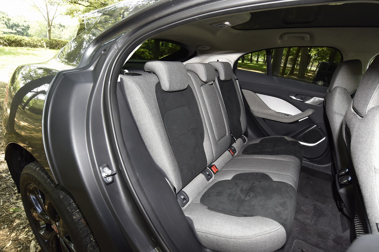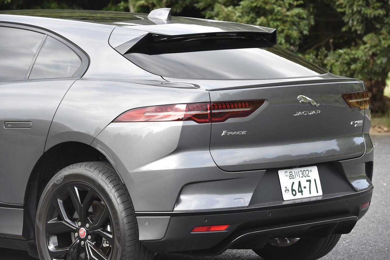 I-PACEは、全長4695mm全幅1895mm×全高1565mm、ホイールベースはラージクラスセダンに匹敵する2990mmというボディサイズ。ジャガーのSUVであることを意味するPACEが冠されているが、短く低い位置に構えたボンネット、一般的なSUVより低い全高と長いホイールベースが独自のスタイルを創出している。