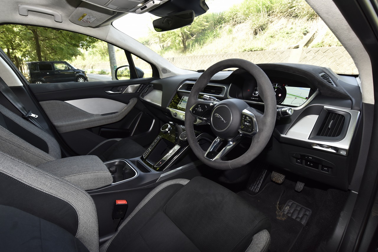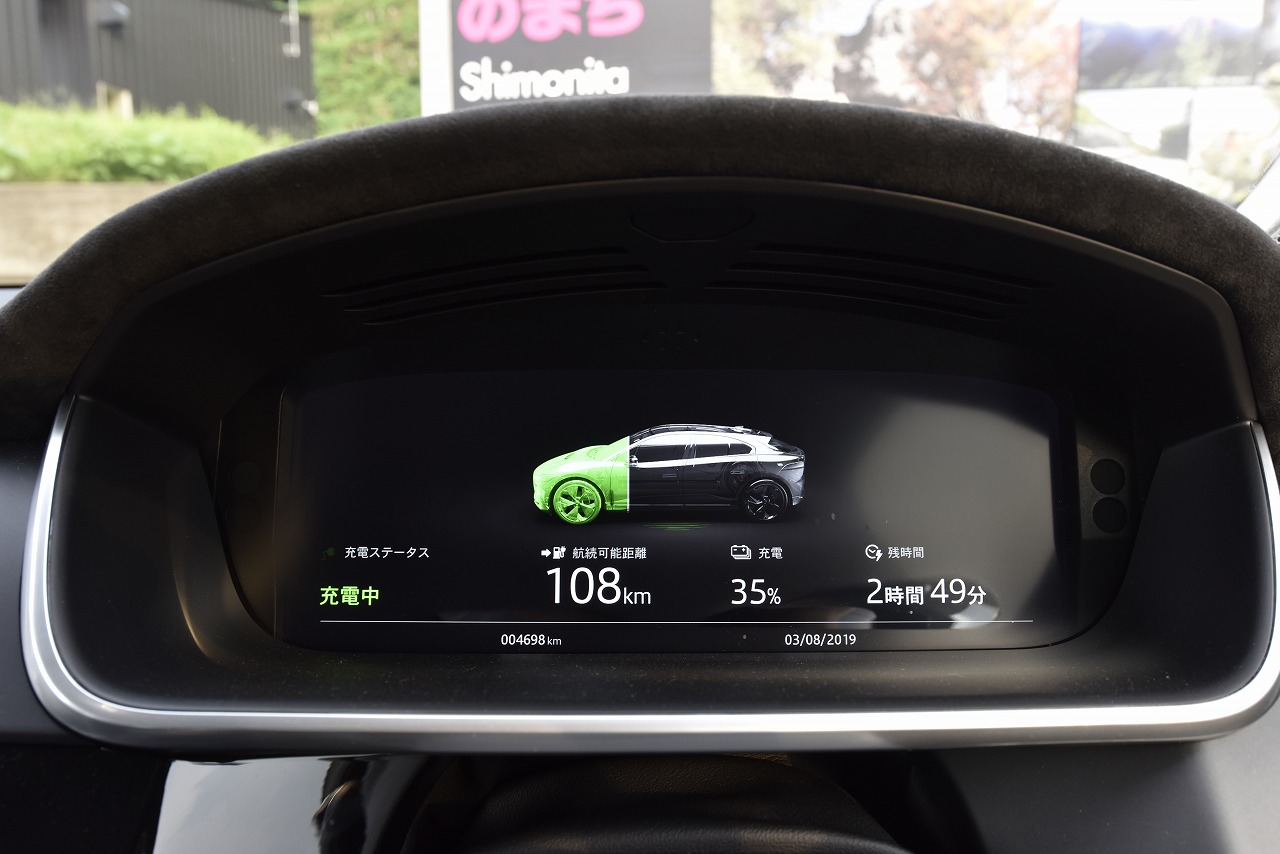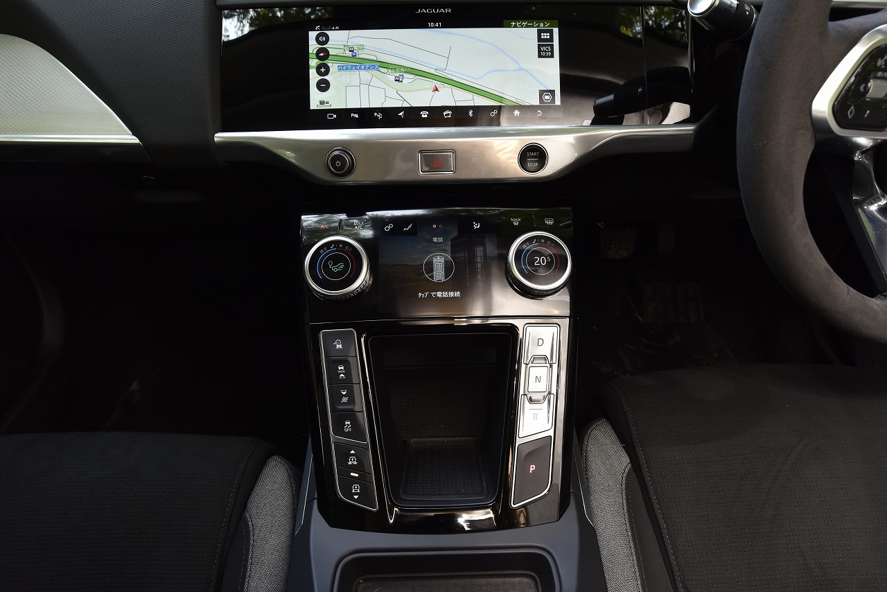 搭載する90kWhのリチウムイオンバッテリーは、WLTCモードの航続距離はカタログ値で438kmを実現。100%充電済みの状態ではメーター表示で428kmとなっていたが、試乗日は35度を超える猛暑だったので躊躇うことなく空調をオンにすると、380km強となった。運転の仕方にもよるが満充電から350kmは不自由なく走行できることもI-PACEに魅力だ。