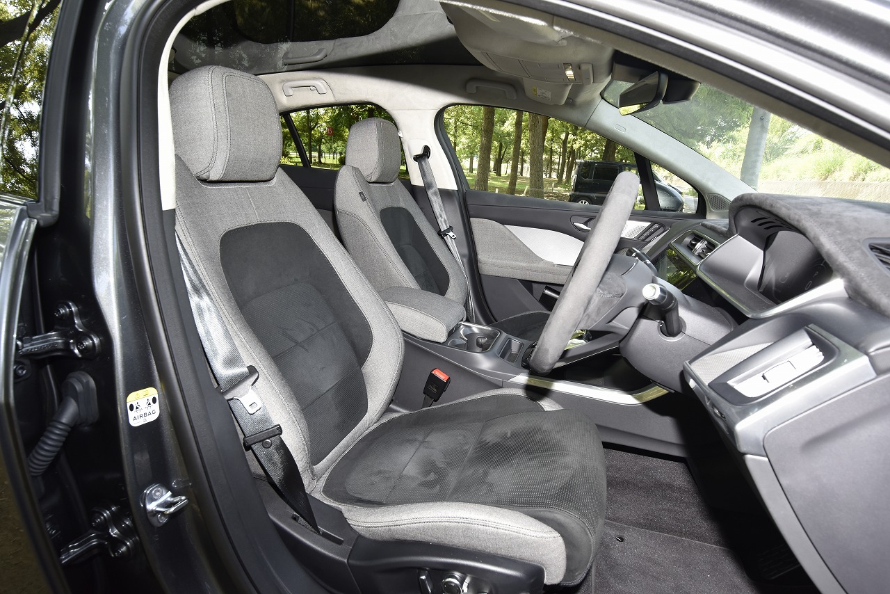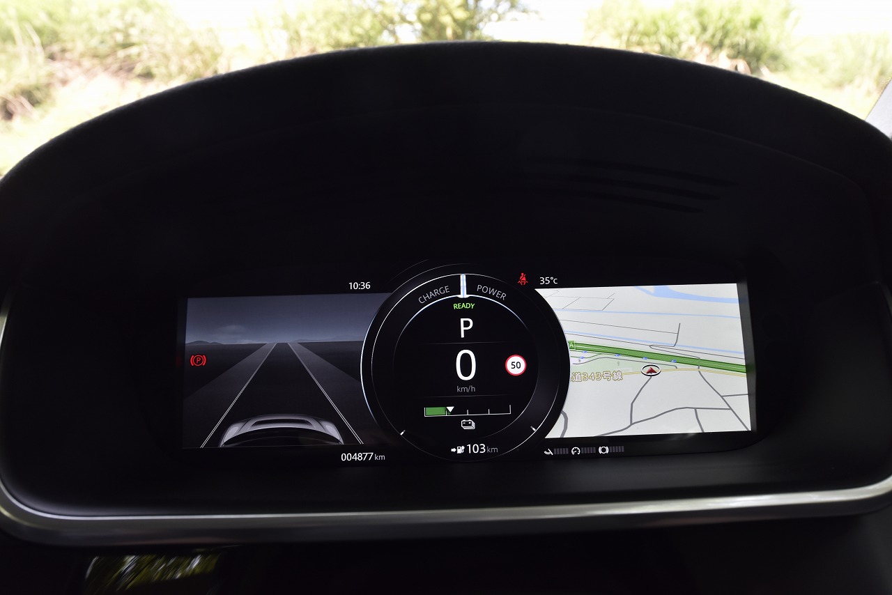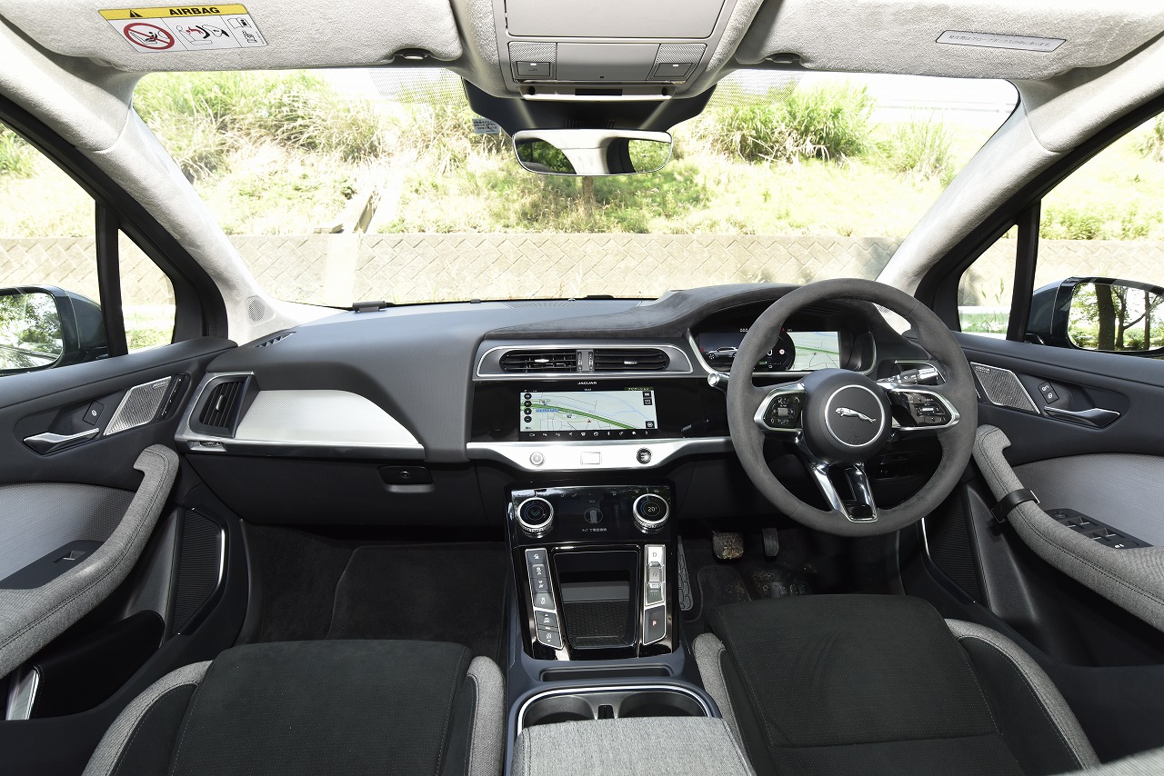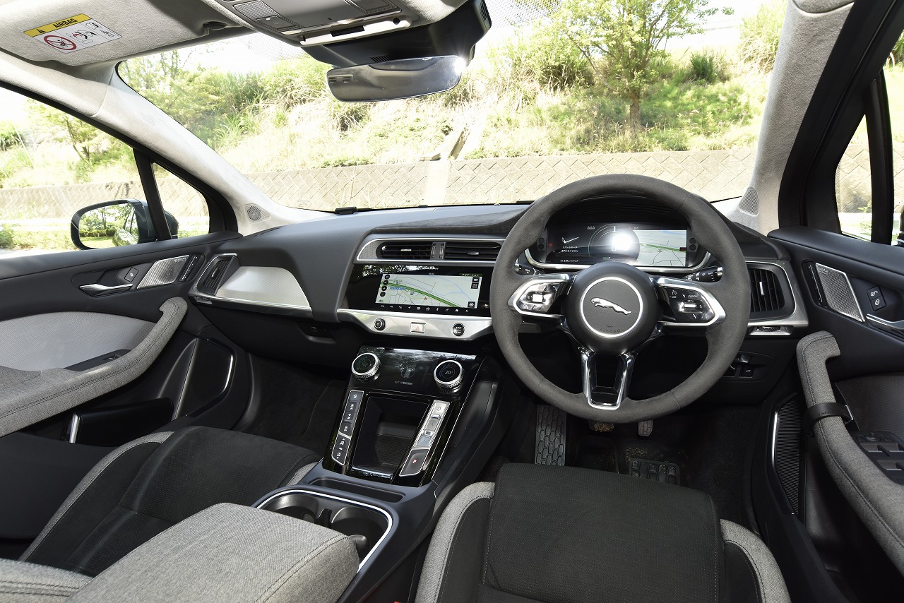 搭載する90kWhのリチウムイオンバッテリーは、WLTCモードの航続距離はカタログ値で438kmを実現。100%充電済みの状態ではメーター表示で428kmとなっていたが、試乗日は35度を超える猛暑だったので躊躇うことなく空調をオンにすると、380km強となった。運転の仕方にもよるが満充電から350kmは不自由なく走行できることもI-PACEに魅力だ。