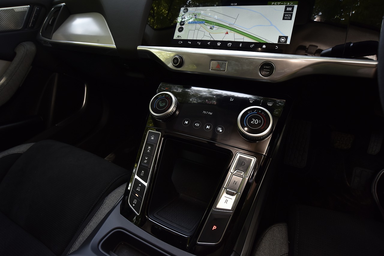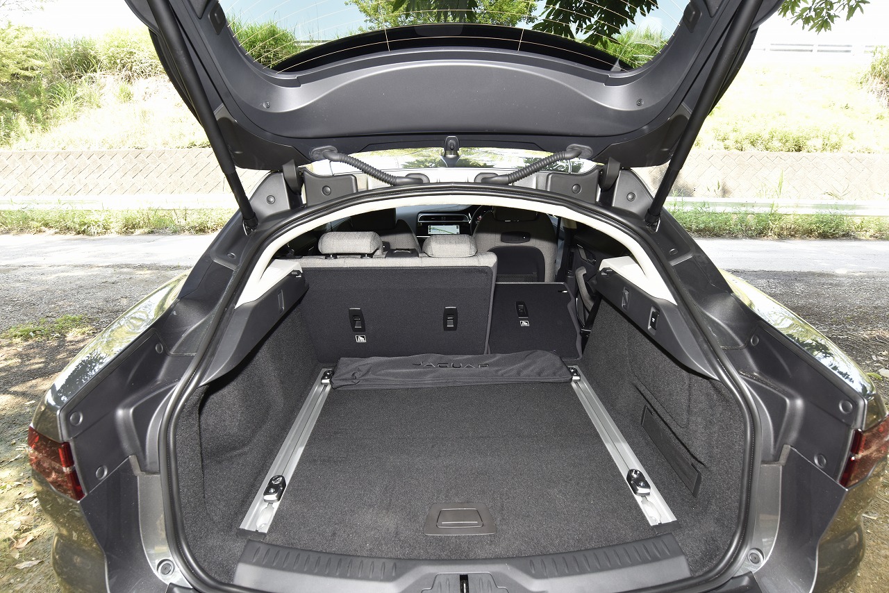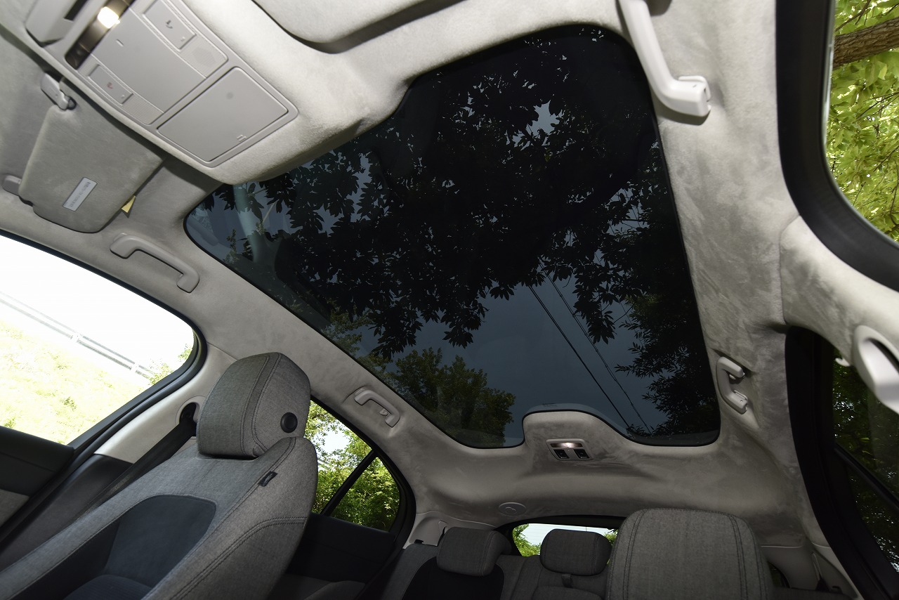 さらに、プロペラシャフトを必要としないため、特に後席の足元空間にゆとりがあり、外観の見た目以上に居住性は高い。加えて、試乗車にはガラスパノラミックルーフ(オプション)が装備されていて、太陽光を吸収し、再放射する特殊コーティングが施されているためシェードやブラインドは不要で、開放的で明るい室内空間をもたらしていた。