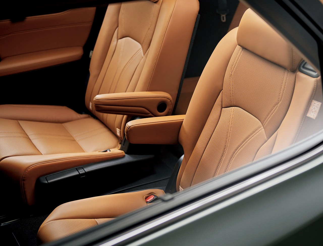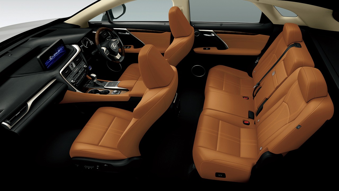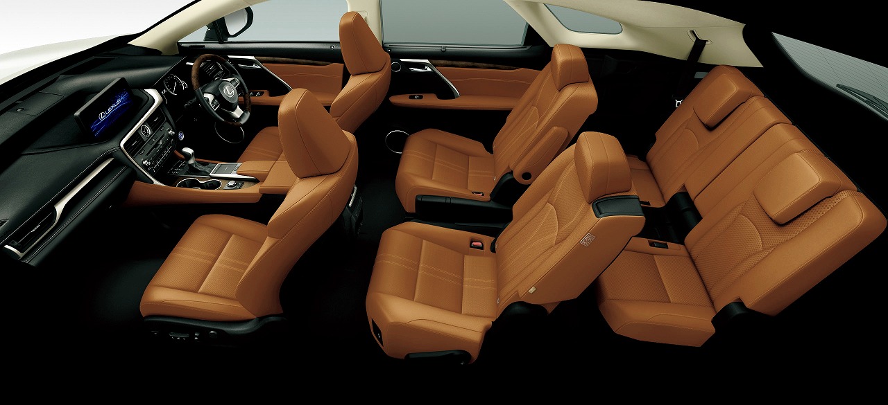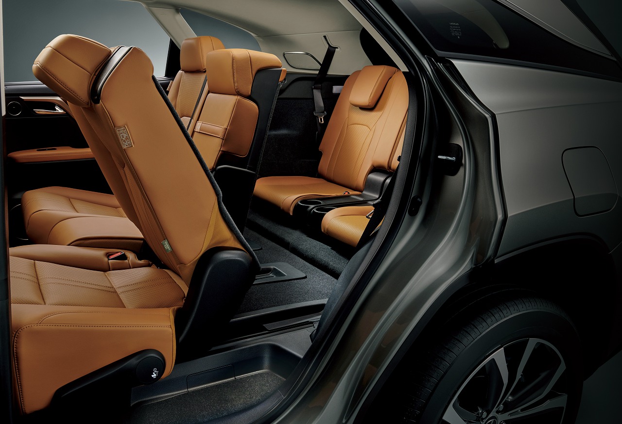 インテリアは、質感の高さはそのままに、ナビゲーションのタッチディスプレイ化や充電用USBソケットの増設、スマートフォン収納箇所の追加、リモートタッチ(タッチパッド式)を採用するなど、利便性を向上。また、RX450hLのサードシートに2種類のシートポジションを設定。室内空間を重視したポジションと、ラゲージスペースを重視したポジションをシーンに合わせて選択可能となっている。さらに、セカンドキャプテンシートをオプション設定し、ゆったりと座れるだけでなく、アームレスト、シートサイドのカップホルダー、スライド&リクライニング機構を設定することで快適性を高め、より上質な室内空間を提供する。