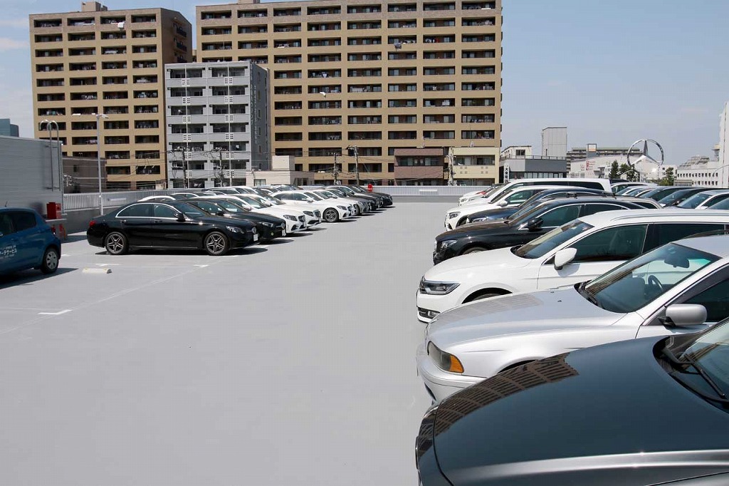 駐車スペースは、来客用駐車場6台を含め95台分のスペースを確保。スロープを使って屋上駐車場にアクセスでき利便性も高い。