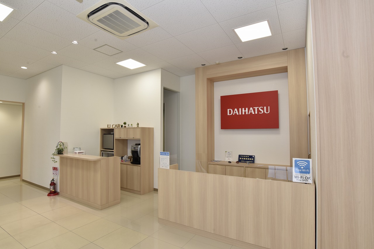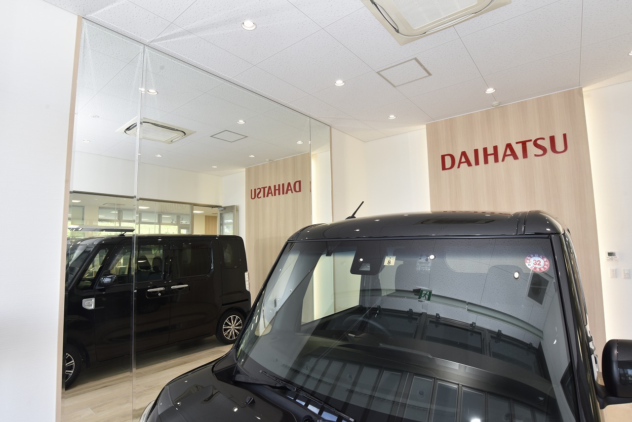 ダイハツの店舗は、女性ひとりでも気軽に入店できるような雰囲気を目指し、ショールームは白と木目を基調とすることで、ナチュラルテイストに仕上げた。加えて、授乳室も完備することで、乳幼児連れの方でも利用できる環境が整えられている。