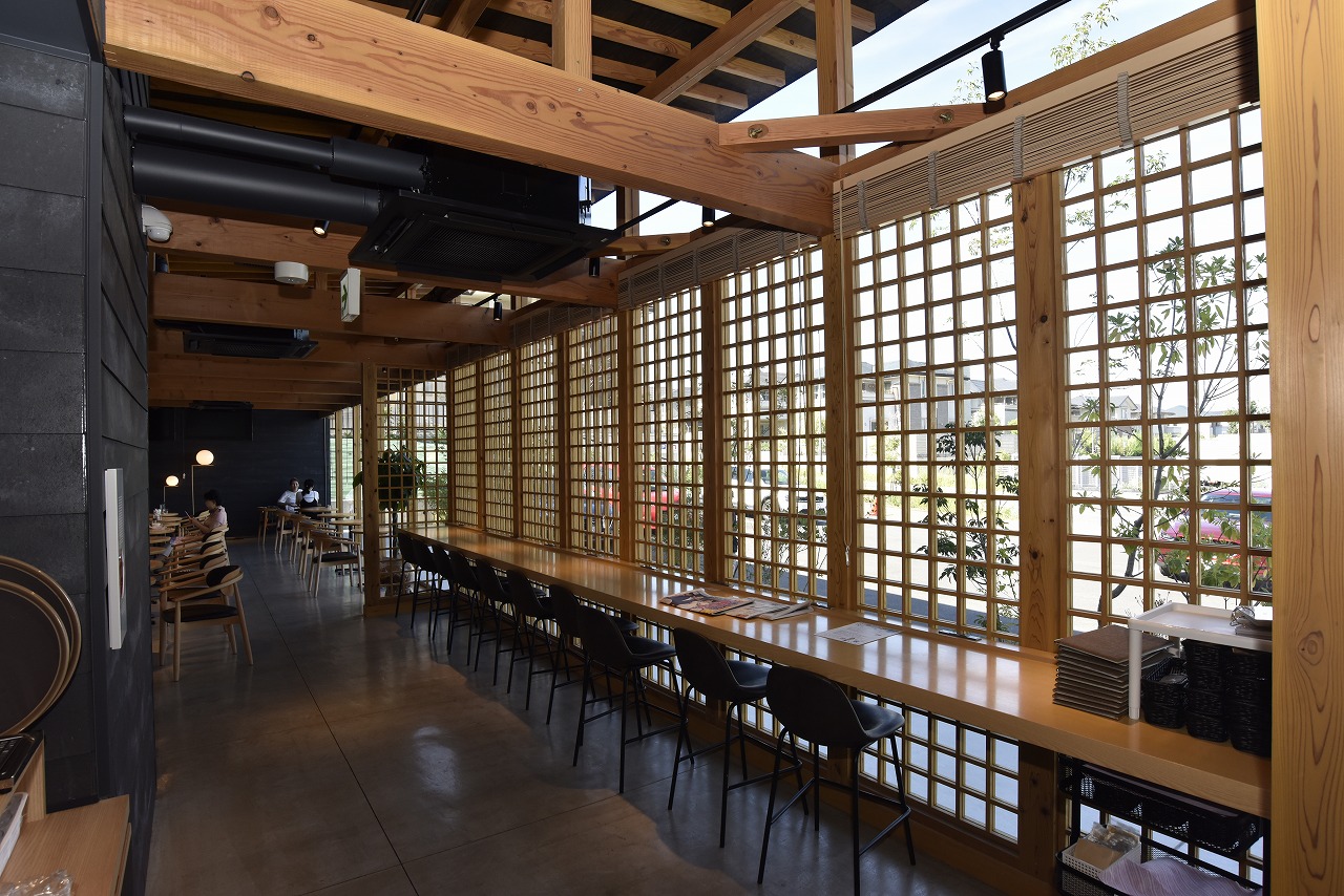 今回紹介するショールームは、奈良ダイハツと奈良日産の認定中古車合同店舗である「グレスタ登美ヶ丘」。両ブランド合わせて170台を超える展示規模に加え、敷地内にカフェとレンタルスペースを併設し、地域住民が気軽に利用することができるのも大きな特徴となっている。