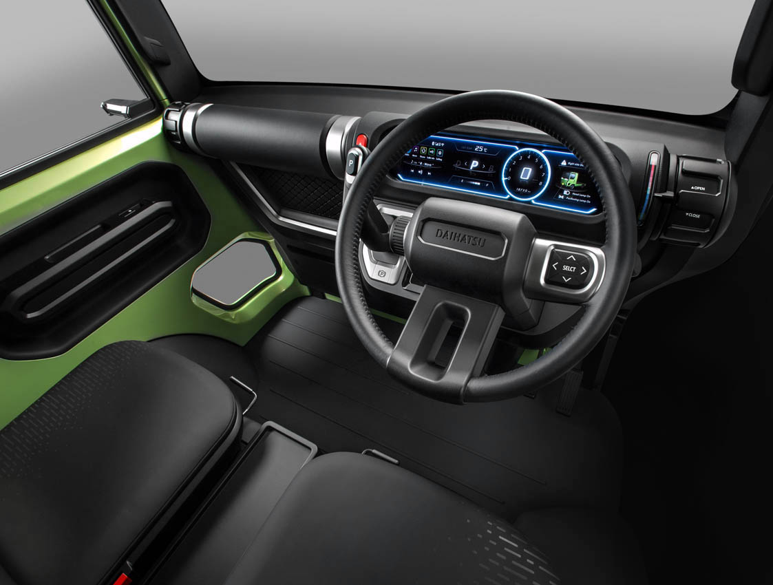 荷台の長さは従来と同等としながらも、キャビン内を広く使える新しいレイアウトを採用した。運転席側ドアはヒンジを後方に持つ中折れ式(エルボードア)になっており、新発想の開口方法で抜群の乗降性を実現した。従来の軽トラックとして活用に留まらず、農業用ドローン基地や個室空間など荷台を換装することで、使い方の幅が一層広がるようになっている。