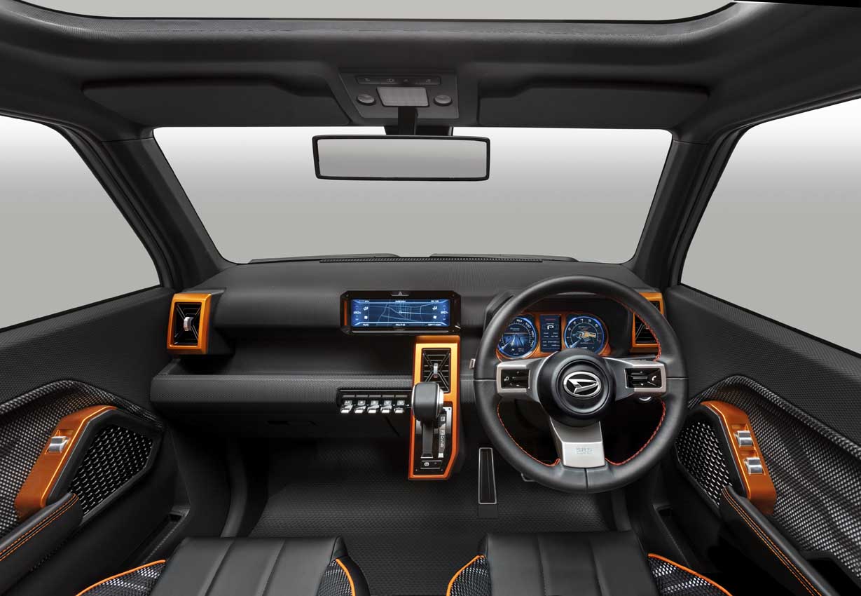 全長4200㎜×全幅1665㎜×全高1665㎜と小型乗用車のサイズに、3列シートを持ち6人乗りを実現した小型ミニバン。運転しやすいコンパクトなボディサイズながら、前後2カ所にサンルーフを配置することで室内の開放感を向上させている。また、従来のミニバンとは一線を画する、ダイハツらしいモダンフレンドリーなデザインを採用した。アクティブな女性に選んでいただいても、男性も満足して使えるコンパクトな多人数乗車車両を目指した。