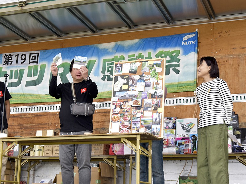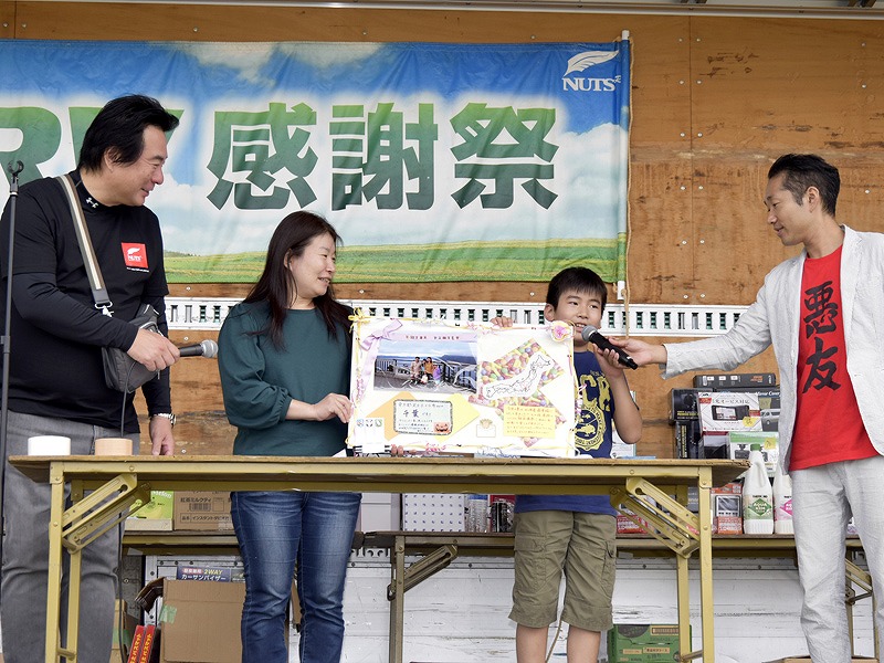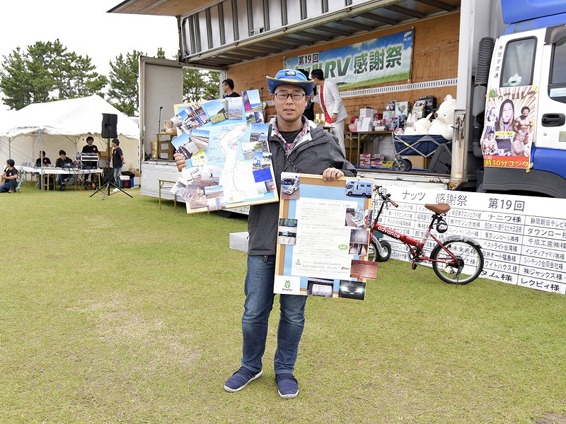 午後1時には、オープニングセレモニーとして静岡市足久保の和太鼓団体「足久保太鼓」が力強い演目を披露。続いて、ステージ前に集まったオーナーを前に、同社の荒木代表が感謝祭の開会を宣言。「皆様に新しい遊びの提案と出会いの場を提供するために、毎年スタッフ一同いろいろな趣向を凝らしている」とし、今回はボードコンテストの実施を発表。このコンテストには、家族やペット紹介、趣味等をアピールするボードの掲示を通して、同じ趣味嗜好の人を繋ぎ、仲良くなってもらいたいという思いが込められている。