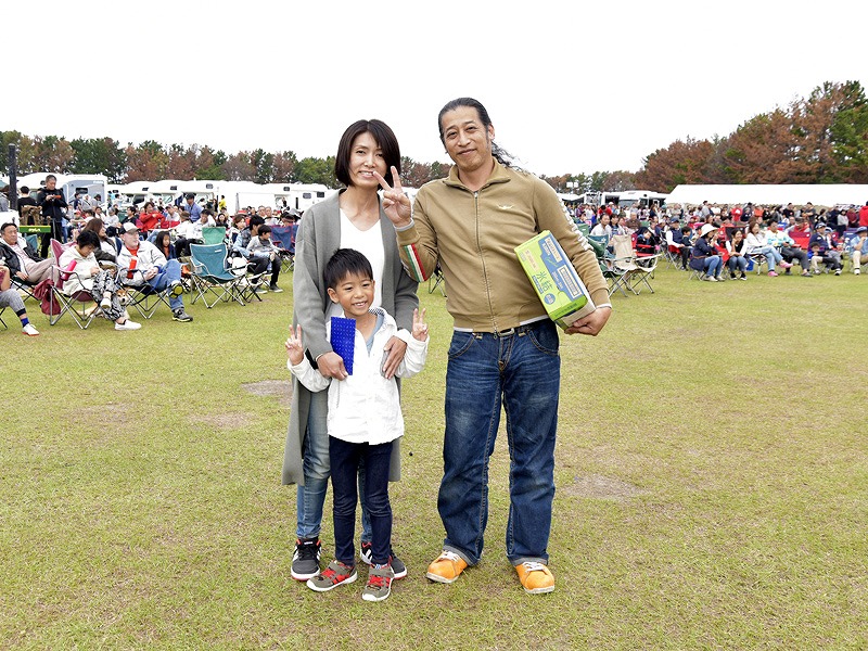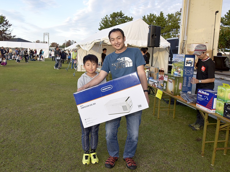 二日目も朝から天候に恵まれ、最高のキャンプ日和。まずはちびっ子玉入れ大会といった子供達の催しの後に、参加者が特に楽しみにしているナッツRV恒例のオークションがスタートした。このオークションでは、アウトドアグッズやキャンピングカーのアクセサリー、高額家電等が破格の金額で出品。オーナー達が熱い競りを繰り広げていた。