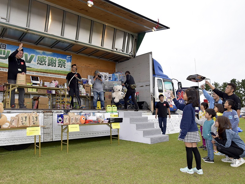 開会式に続いて、盛りだくさんのイベントコンテンツがスタート。お笑いコンビ上々軍団のさわやか五郎氏とナッツRVの土屋慎氏による軽快な司会に促され、早速ジャンケン大会や綱引き大会、ビンゴ大会等、子供達も一緒になって楽しめる催しが行なわれた。