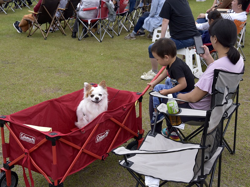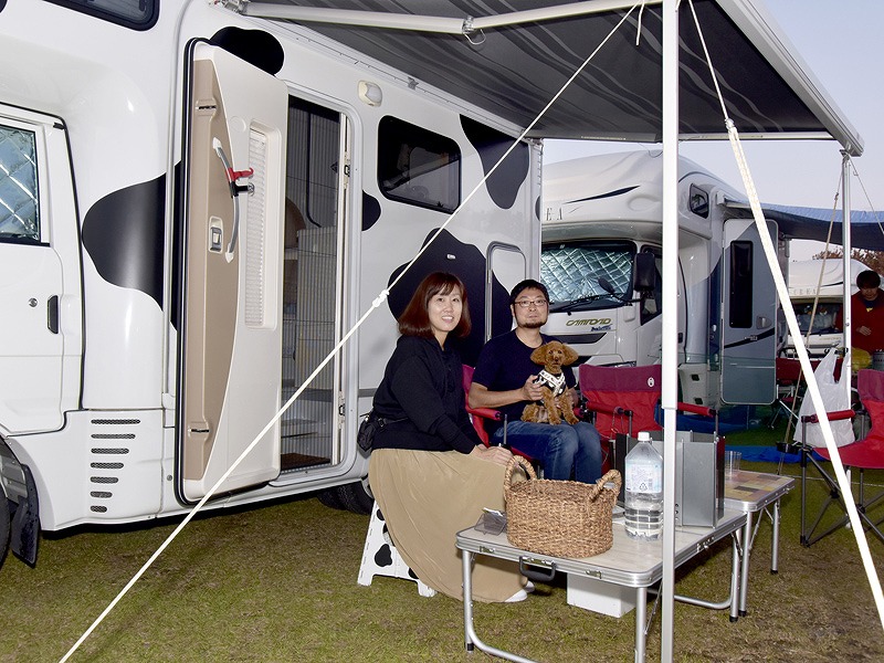 キャンピングカーサイトでは、趣向を凝らした紹介ボードがクルマに掲げられており、それを見て回るオーナーとその家族、そしてペットのワンちゃんたちがそこかしこで交流する姿が見られた。