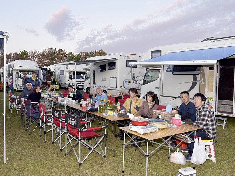 今回で19回を数えるこの感謝祭は、ナッツRVのオーナーを対象に、クルマ遊びと出会いの場の提供、そして日頃の感謝の気持ちを伝える目的で開催している同社主催のキャンプ大会。昨年に引き続き静岡県浜名湖渚園キャンプ場を会場に、10月26・27日の一泊二日の日程で行なわれた今年は、過去最高となる416台のキャンピングカーが集結。参加人数、規模ともに国内最大級のオートキャンプイベントとなった。