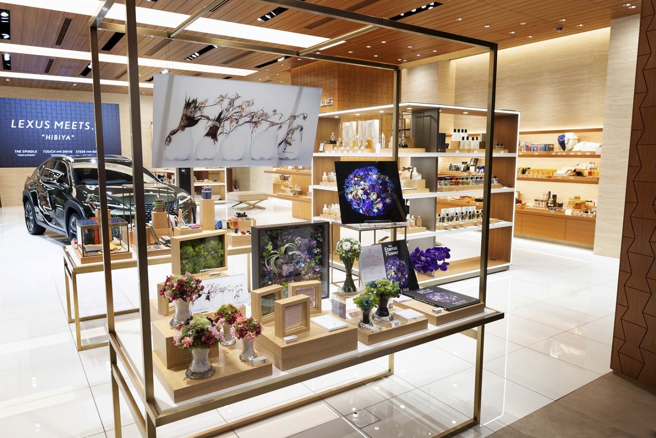 本イベントでは、ブティック「STEER AND RING」に期間限定のPOP UP SHOPをオープン。フローリストの日本一を決めるジャパンカップで優勝し、日本一になった経歴をもつG3Dのフラワーデザイナー・新井光史氏(写真右)が制作を手がけたG3D初となるオリジナル商品を「STEER AND RING」限定で販売する。オリジナル商品はプリザーブドフラワーなどを使ったインテリア雑貨やフォトアートなど、作品集「the Eternal Flower」の世界観を体現した1点ものを中心に、LEXUSのある上質な空間にふさわしい商品が展開される。
