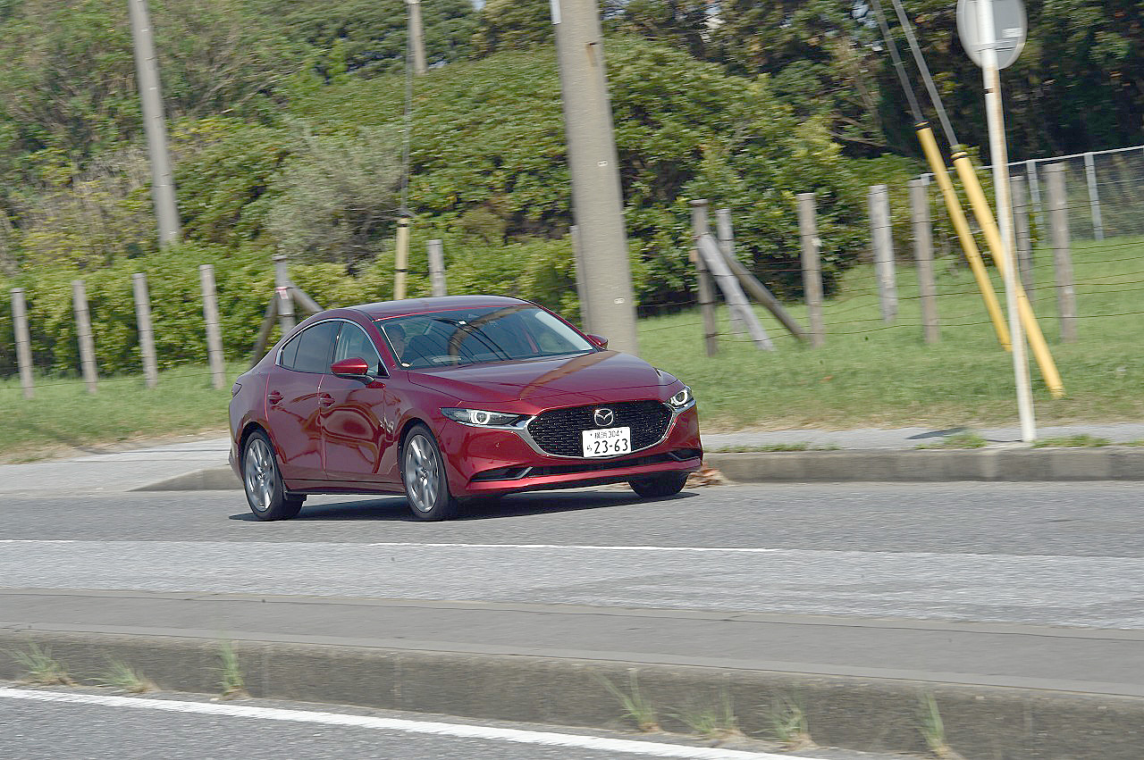ハンドリングは扱いやすさを重視しながら、程よい操舵感のあるもので応答性も良好。操舵に対するレスポンスやクルマの動きにも軽快感があり、特にワインディングでのしなやかな走りは、ロードスターが標榜する“人馬一体”の片鱗をMAZDA3においても感じることができた。走り好きや、クルマの購入要件に動的質感の高さを求めるユーザーにとって満足度の高いモデルと言える。