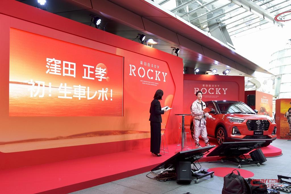 ダイハツは11月9日、都内六本木ヒルズ・大屋根プラザにて、新型コンパクトSUV「ROCKY(ロッキー)」の発売記念イベントを開催した。イベントでは、ロッキーのCMキャラクターを務める俳優の窪田正孝さんがゲストで登場。トークセッションやロッキーの車両レポート“車レポ”に挑戦し、会場を沸かせていた。