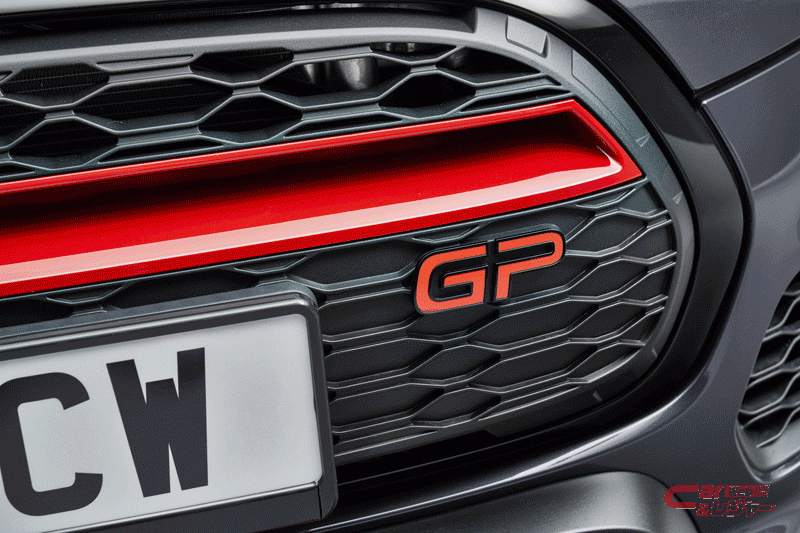 ボディ・カラーは、専用に開発された「レーシング・グレー・メタリック」を採用し、ルーフとミラー・キャップのメルティング・シルバーがアクセントとなっている。また、ワイドなトレッド、大きなフロント・エプロン、張り出したホイール・アーチ・カバーのフロント・デザインと、車両正面からも見えるリア・スポイラーなどエアロ・ダイナミクスを実現するデザインとなっている。さらに、ボンネット上のエア・スクープや、「GP」のロゴがあしらわれたラジエター・グリルなど、John Cooper Works 特有のスポーティな装備を採用しているほか、サイドに装備されたホイール・アーチ・カバーは、軽量素材であるカーボン・ファイバーを使用してハンド・メイドで成型され、あえて繊維の編込みが見えるデザインとなっている。リアの大型のリア・スポイラーは、圧倒的な走行性能を支える空力性能を備えている。