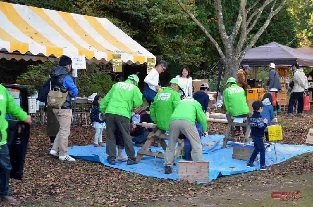 この他、県内の水源林の保全活動を行う同社のプリウス森木会による、ドングリ等を使った木工体験や丸太切り体験、プリウスPHVによる給電デモンストレーションも行われた。