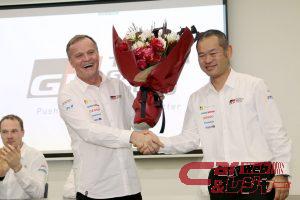 今季のFIA世界ラリー選手権(WRC)を戦い終えた、トヨタガズーレーシング ワールドラリーチーム(TGR WRT)のメンバーが11月20日、トヨタ自動車東京本社を訪れ“シーズンエンド取材会”が行われた。それぞれ2019年シーズンを振り返るとともに、チームを率いたトミ・マキネン代表に花束が、ドライバーチャンピオンを獲得したオィット・タナック選手に記念品が贈られた。