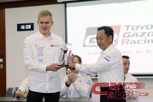 トヨタ自動車・GR統括部モータースポーツ推進室・市川正明室長は「過去2年オーバーヒートに苦しめられたメキシコでは、冷却系の改善により今年は表彰台に立つことができた。第4戦・フランスでは全車パンクに見舞われたが、様々な設計変更がドイツでの1~3位独占につながった」と、カイゼンの積み重ねが今季の成績につながったと説明。また、来季の最終戦は日本(愛知・岐阜県)で開催され「本社に近い開催地で祝杯を挙げたい」と、ドライバー、コ・ドライバー、マニュファクチャラーズの3冠制覇を誓った。
