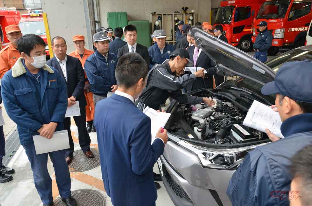 横浜トヨペット(宮原漢二社長)は11月26日、車両火災における原因調査、実況見分のスキルアップに向けた講習会を川崎幸消防署(川崎市幸区)で行った。この講習は「車両火災では車両の構造を知らないと、火元を特定できない場合もあり、車両の基本構造を学びたい(幸消防署警防第1課調査係・左藤昇係長)」という要請に応えて実現したもので、同署署員41名が受講した。