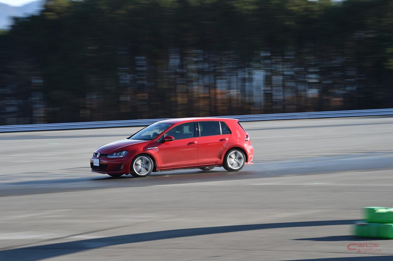 体験用の車両は、VW・ゴルフ GTI(FF/AT)、アバルト・124 スパイダー(FR/AT)、スバル・BRZ(FR/AT)、ポルシェ・911カレラ(RR/AT)、スズキ・スイフトスポーツ(FF/MT)と、駆動やミッションが異なる車両を用意。参加者はプログラムは午前と午後の二部制となっており、いずれもインストラクターのデモ走行後に全モデルに試乗が可能となっていた。