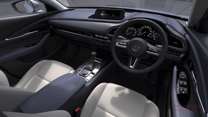 外装色の「ポリメタルグレーメタリック」は、“樹脂独特のヌメリ感と金属感の融合”をイメージして生まれた新しい質感を表現しており、「MAZDA3」では赤系色「バーガンディ」内装との組み合わせで、“大人の色気を放つエキゾチックモダンスポーツ”を表現しているとのこと。「CX-30」では、質感の高いネイビーブルーと明るいグレージュを組み合せた内装色とともに、“開放感あるクールモダンな世界”を表現している。