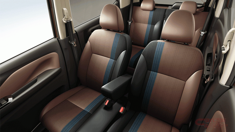 今回の受賞対象となった「デイズ ハイウェイスター」のカラーデザインは、エクステリアではスパイスの効いた2トーンのボディカラーを採用し、インテリアではパイピング&ダブルステッチを施したラッピングインパネ(軽クラス初)や凝った風合いのコンビネーションシートを採用しているほか、随所にターコイズブルーのアクセントを加えてと特別感を演出している。