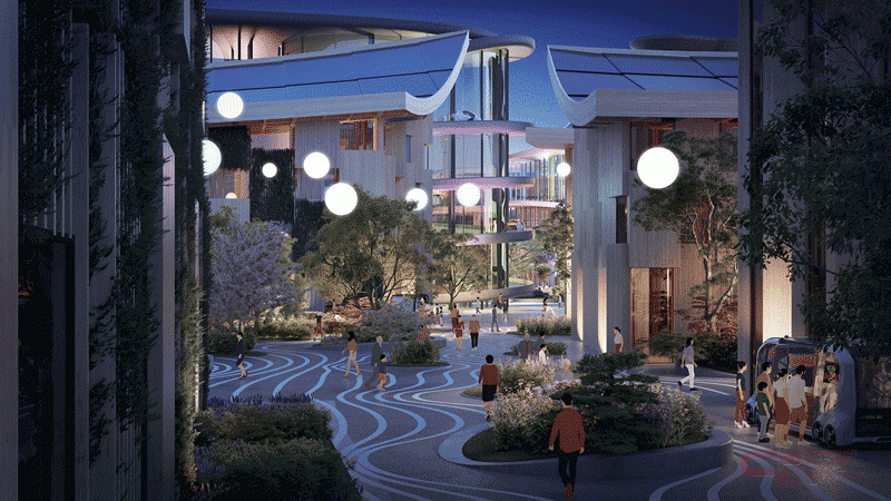 - 街の建物は主にカーボンニュートラルな木材で作り、屋根には太陽光発電パネルを設置するなど、環境との調和やサステイナビリティを前提とした街作りを行う。