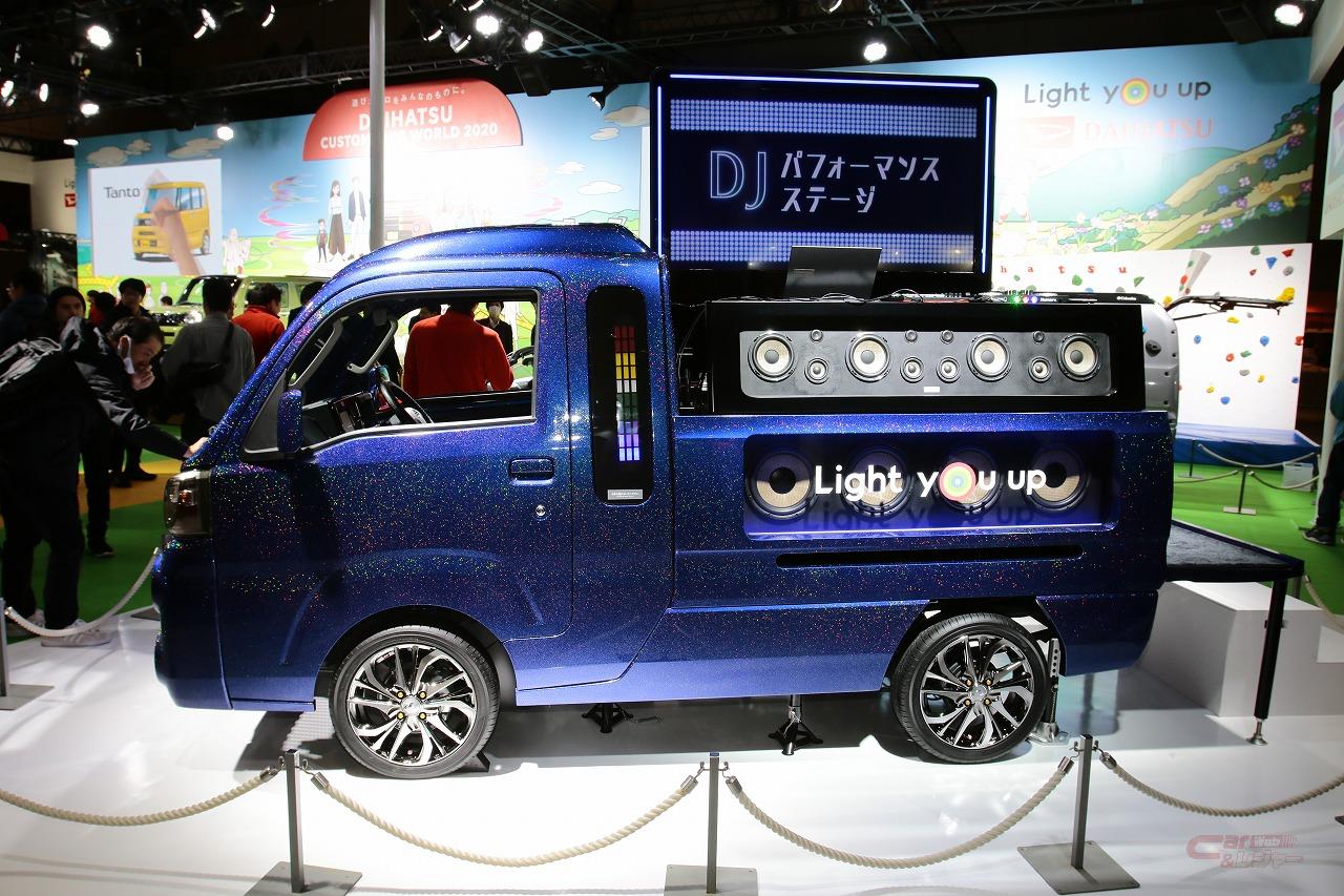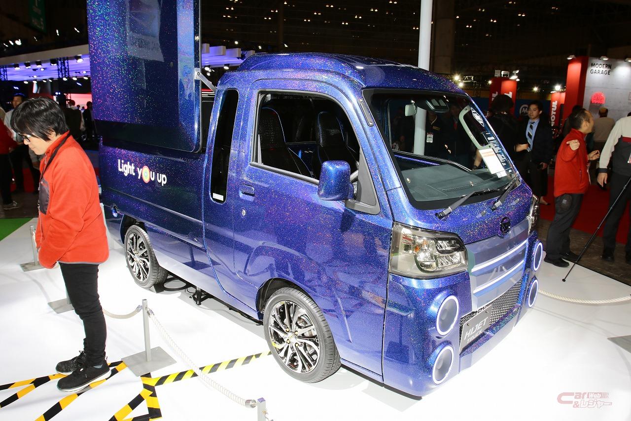 例年オートサロンで独特なコンセプトモデルが出展されるハイゼットトラック。今回は、商用車としてではなく“遊び”にウェイトを置いたコンセプトモデルが出展された。