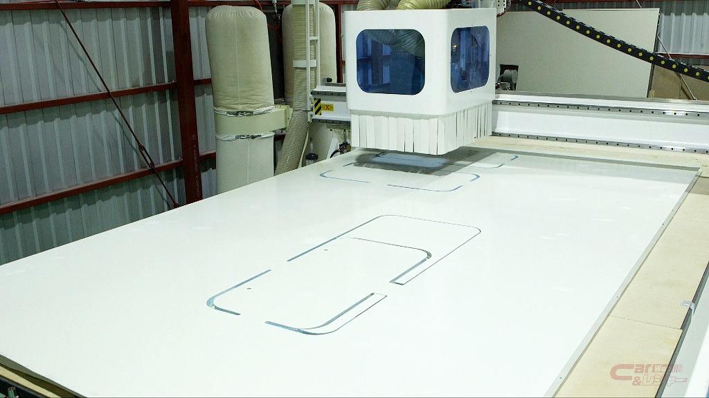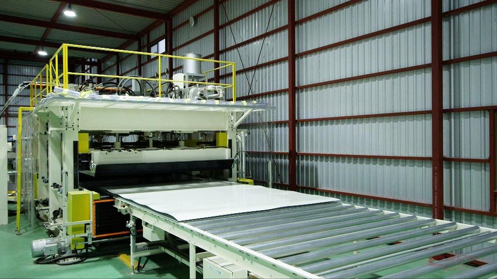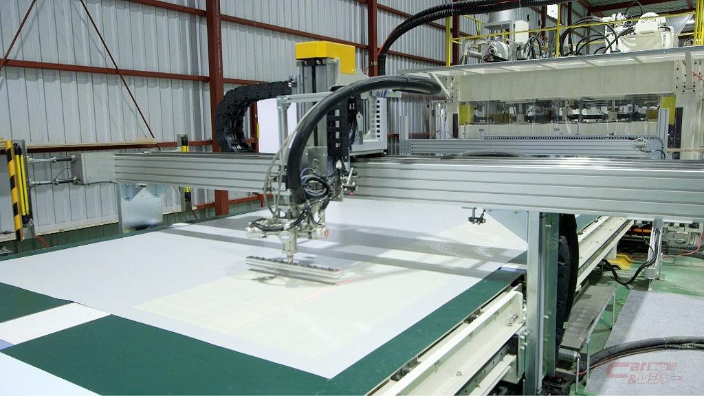 導入された機器は主に、オートアプリケーションマシン、ホットプレスマシン、CNCルーターと呼ばれるカットマシン。オートアプリケーションマシンは、接着剤をむらなく均一に塗布する機器で、作業工程の大幅な短縮を実現。ホットプレスマシンは、時間・温度をコンピューターで制御しながら熱圧着で複合パネルをプレスするマシンで、乾燥工程を踏まないため生産時間を大幅に短縮。加えて、品質も高いレベルで均一化。従来は手作業でカットしていたパネルは、コンピューター制御によるCNCルーターの導入により、正確で歪みのないパネルの安定供給を可能にした。