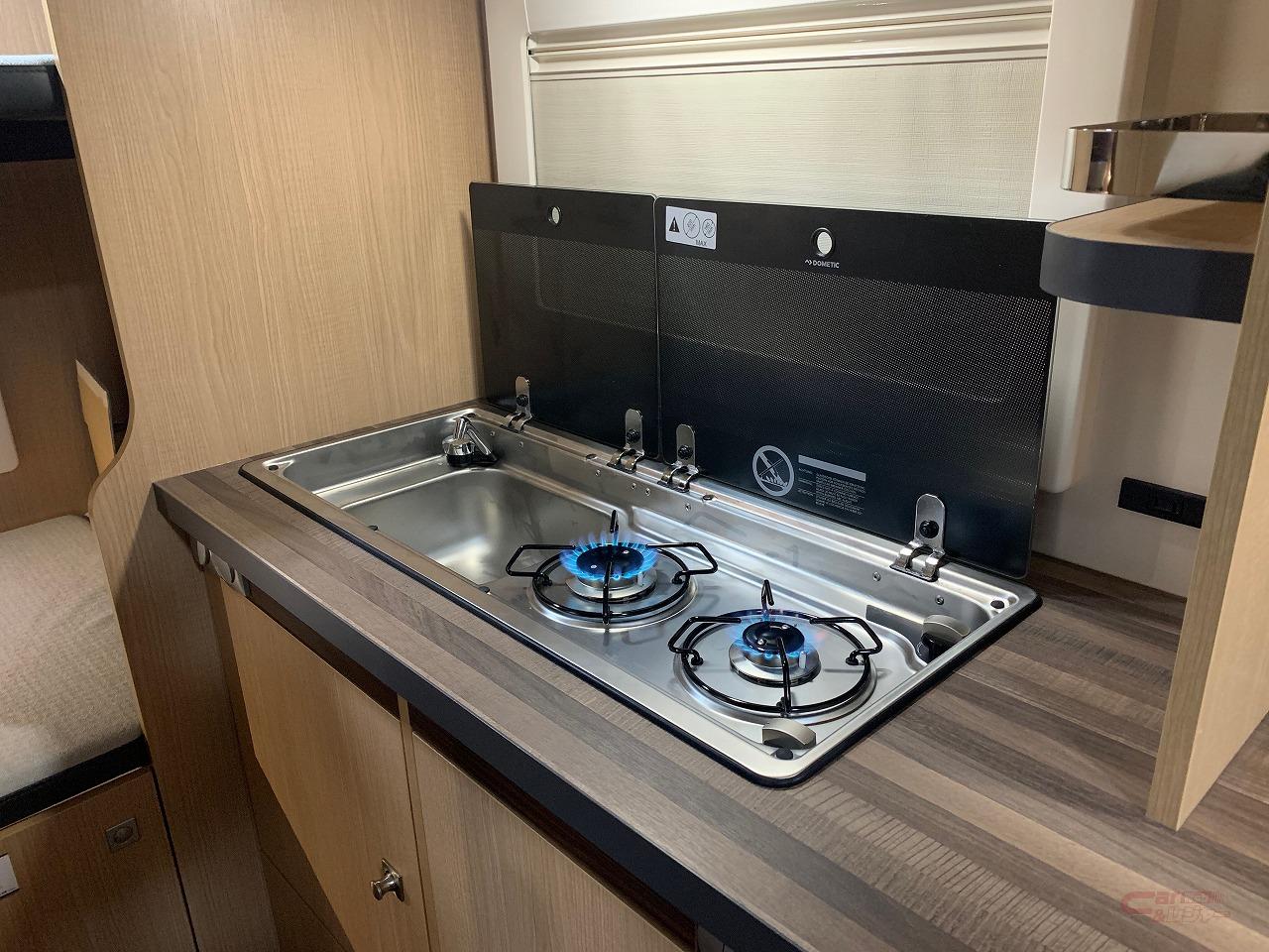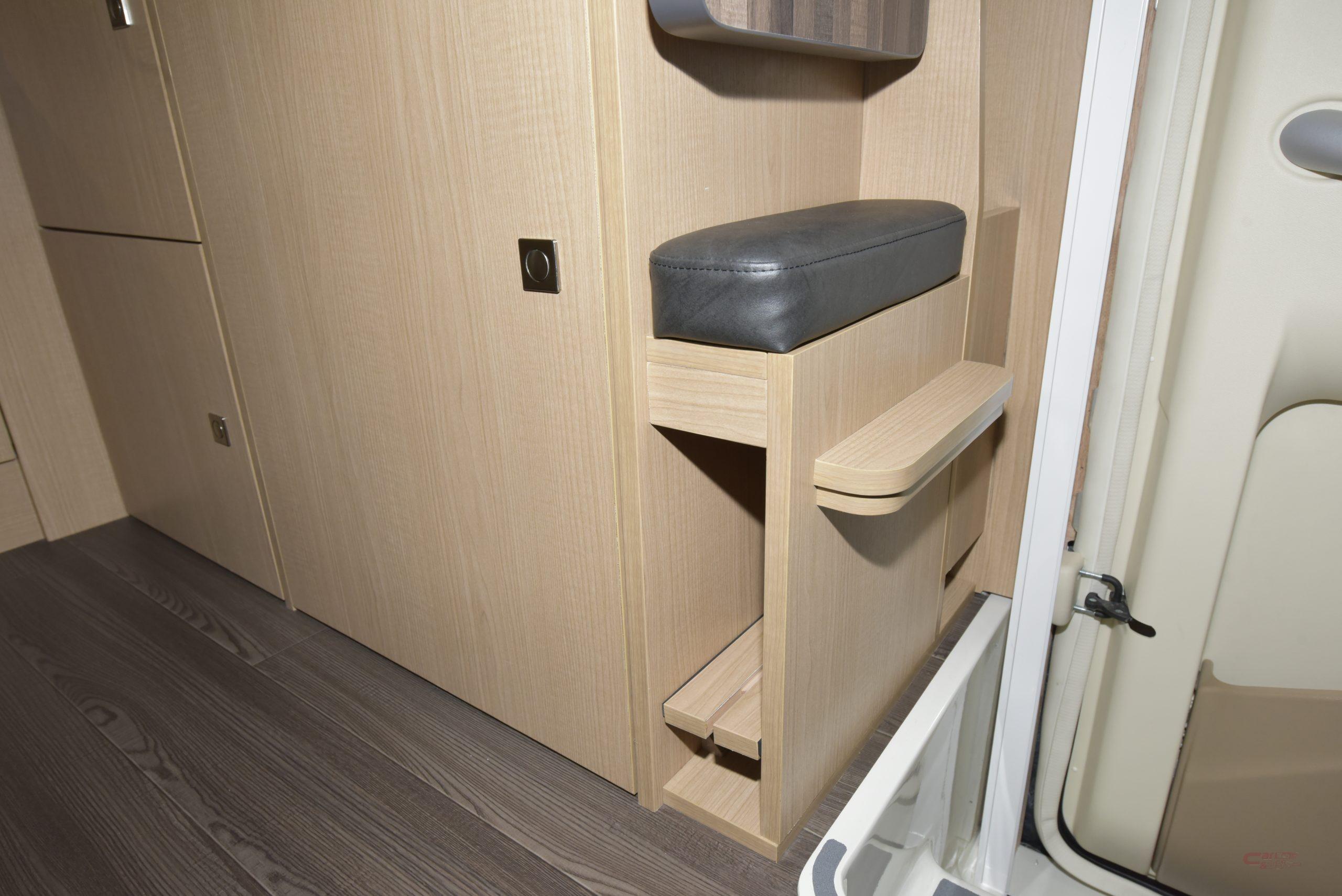 インテリアは、ジルの暖色系照明と打って変わり、平面発行のLEDが明るく照らす空間となっており、内装色はダークブラウンとライトブラウンの2タイプから選択可能なこともコルドバンクスの特徴。新型車からルームエアコンも標準装備となったほか、随所にスポットライトやUSB&ACコンセント、ポータブル冷蔵庫の専用置き場も設けられるなど、細部にわたって利便性を追求した。