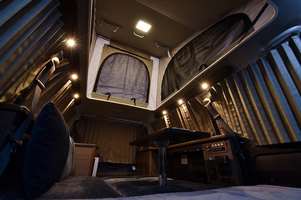 また、他のオーロラシリーズではオプション設定のポップアップルーフも標準装備。ポップアップルーフは、独自ノウハウにより、雨や雪といった環境下でも使用できる他、降雪時等、気温0℃以下でも、FFヒーターや防寒インナーを装着すればテント内はポカポカだ。