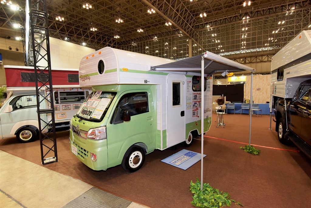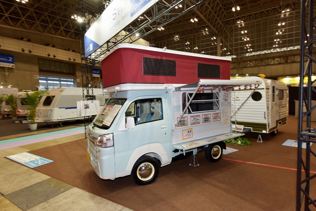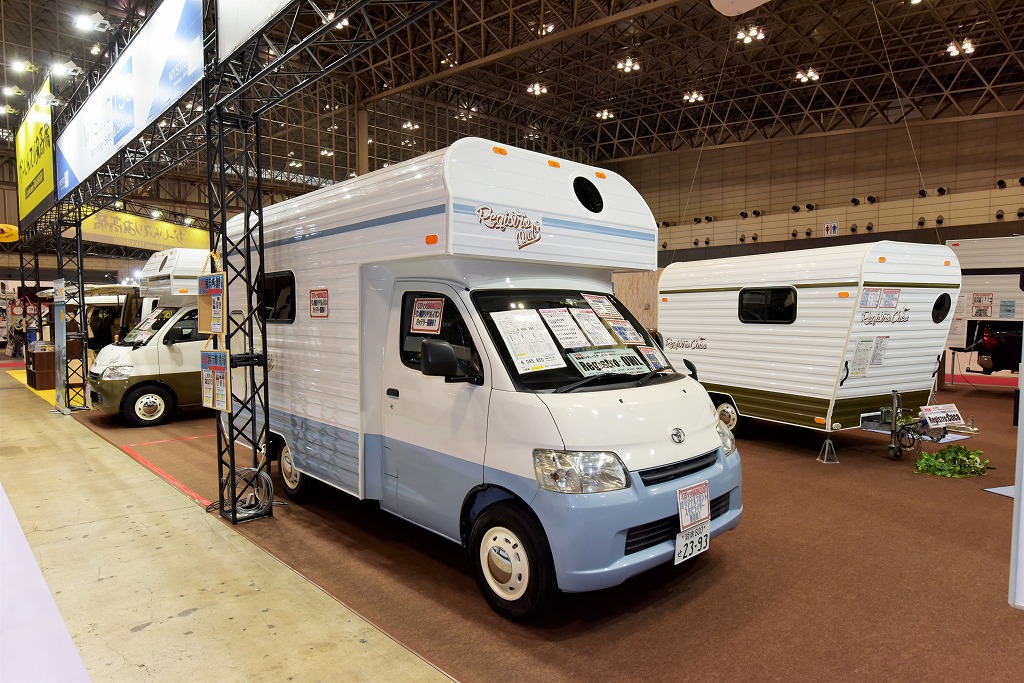 中でも来場者から注目を集めていたのが、ショーデビューを飾った小型トレーラーモデル「レジストロ・クコ」。同社独自のボディバス工法を採用した軽量かつ高強度なボディで総重量を480㎏(標準車仕様)に抑えたことで、軽自動車での牽引も可能にした。