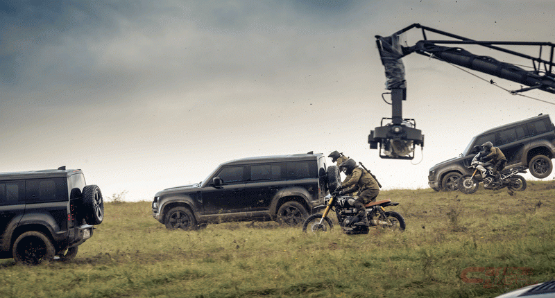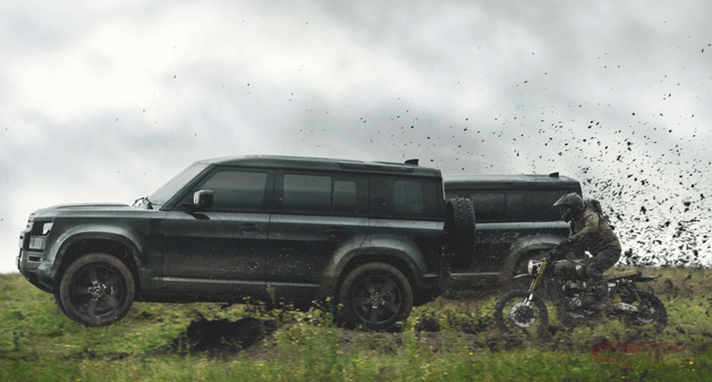 ランドローバーのデザイン・チームは、スペシャル・エフェクト、アクション・ビークル・スーパーバイザーのクリス・コーボールド氏と協力して、「NO TIME TO DIE」で使用する「DEFENDER」の仕様を決定した。同作品で登場する「DEFENDER」の車両は、スロバキアのニトラにあるジャガー・ランドローバーの新しい製造工場で作られた最初の新型「DEFENDER」で、「DEFENDER 110 X」サントリーニブラックモデルをベースとして、暗い色のキックプレート、20インチのダークフィニッシュホイール、オフロード向けプロフェッショナルタイヤを搭載している。