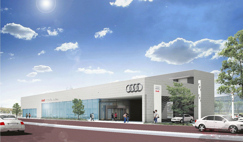 エントランスはピロティ構造になっており、雨天や荒天時にも対応している。また、カスタマーゾーンを備えた室内空間には、9台の最新ラインナップを展示するほか、360度視野の高画質映像やVR(バーチャルリアリティ)技術を用いたデジタル商談スペース「Customer Private Lounge(CPL)」を導入している。またAAA(Audi Approved Automobile)コーナーを併設し、高品質な認定中古車を展示しているのに加え、地域最大級のワークショップを新設。7つの作業ベイをはじめ、アウディ初の電気自動車e-tronの導入を見据えて高出力な急速充電器の導入準備を完了している。