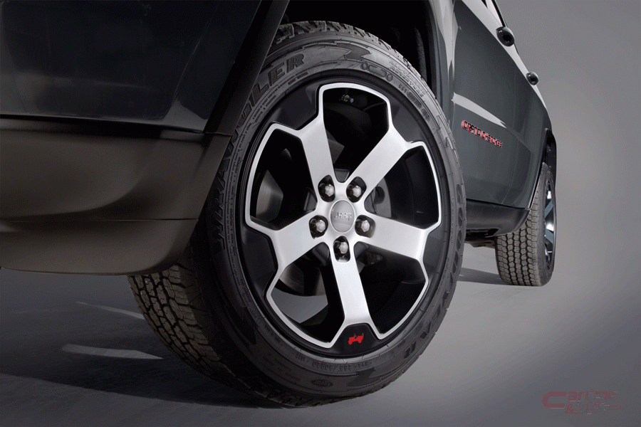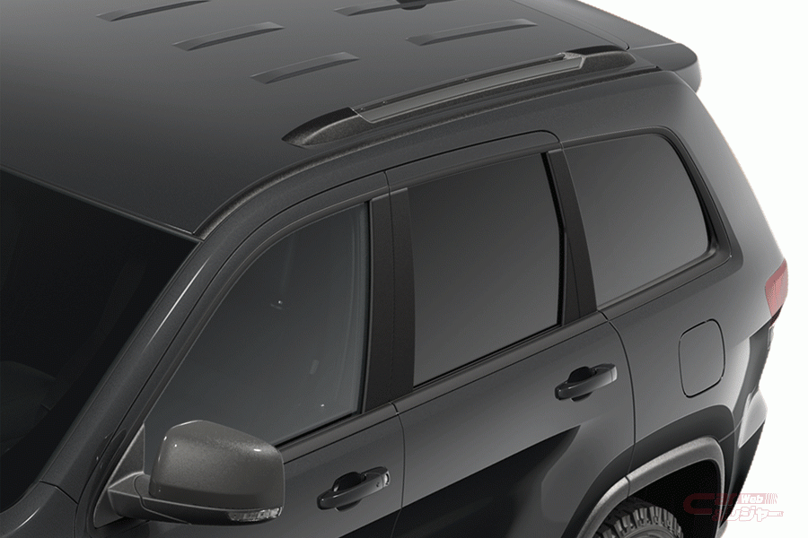 エクステリアでは、ダークグレーのアクセント付ブラックグリル、ダークグレードアミラー、ダークグレールーフレール、レッドのTrail Ratedバッジ、スキッドプレートなどを装備。ボディカラーには、通常モデルには設定のないグレーマグネシオメタリックP/C(内装色はブラック)を採用している。