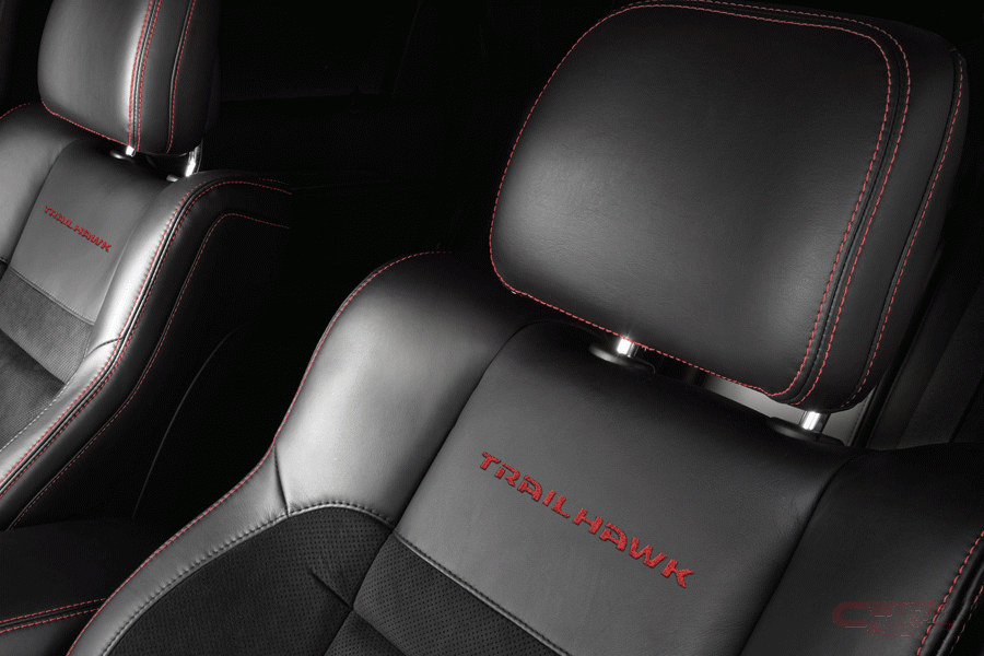 インテリアでは、レザーとファブリックを組み合わせたTRAILHAWKロゴ入りコンビネーションシートを装備しているほか、レッドステッチ入りのインテリアアクセントを採用。さらに、リバーシブルカーゴフロアや、ラバーフロアマットにより実用性を向上した。