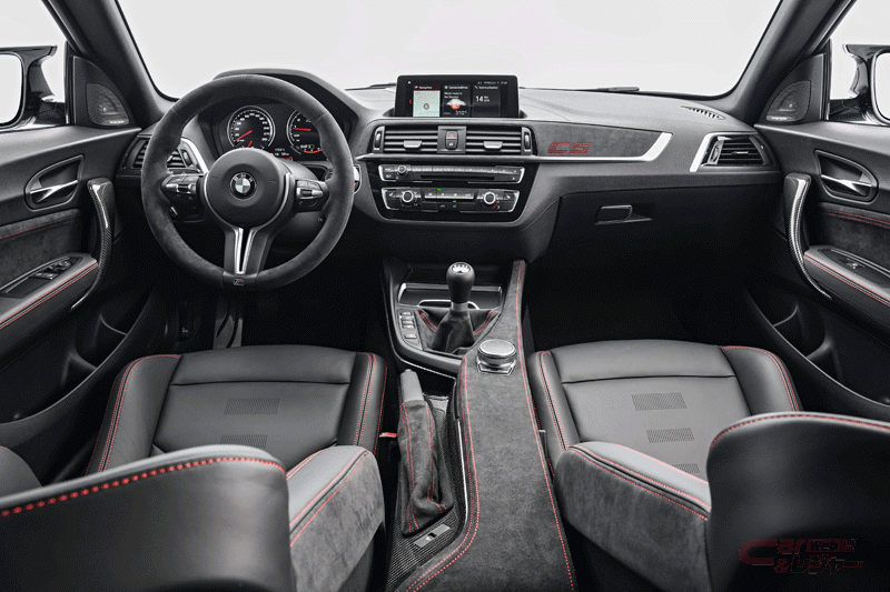 インテリアでは、アルカンタラのMスポーツ・ステアリング・ホイール、カーボン・ドア・ハンドル、カーボン・センターコンソールを装備し、シートには「M2」の照明付きエンブレムが装備された M Competition スポーツ・シートを採用している。