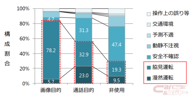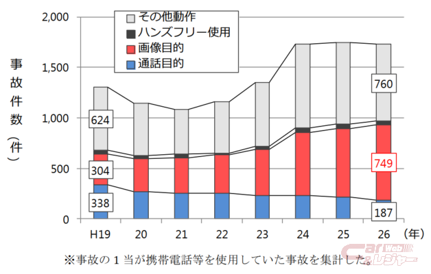 昨年12月1日より、運転中の「ながらスマホ」に対する罰則が厳しくなり、近年ながらスマホ運転による交通事故件数は年々増加している。中でもカーナビの注視や携帯電話の画像を見たり操作したりする「画像目的使用」が事故の原因となっているケースが多く見られる。また、死亡事故率は携帯電話を使用していない場合と比べて、使用している場合は約2.1倍高まる傾向もある。