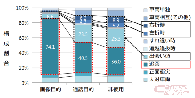 また、ながらスマホ運転の増加傾向や死亡事故に繋がる傾向について分析した調査結果も発表。見通しが良い「直線道路」ほど、油断してスマホの画面を見る人が多いため事故が多発しているという事実や、スマホ操作時には、本人が思っている以上に注意散漫になっており、前方から来る人や自動車に気づかず「追突事故」に繋がりやすい傾向などが明らかになっている。