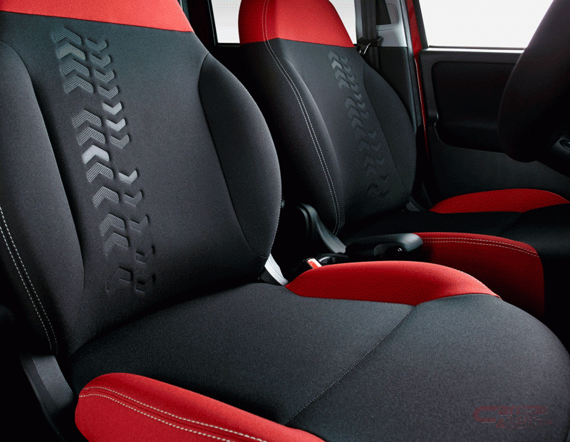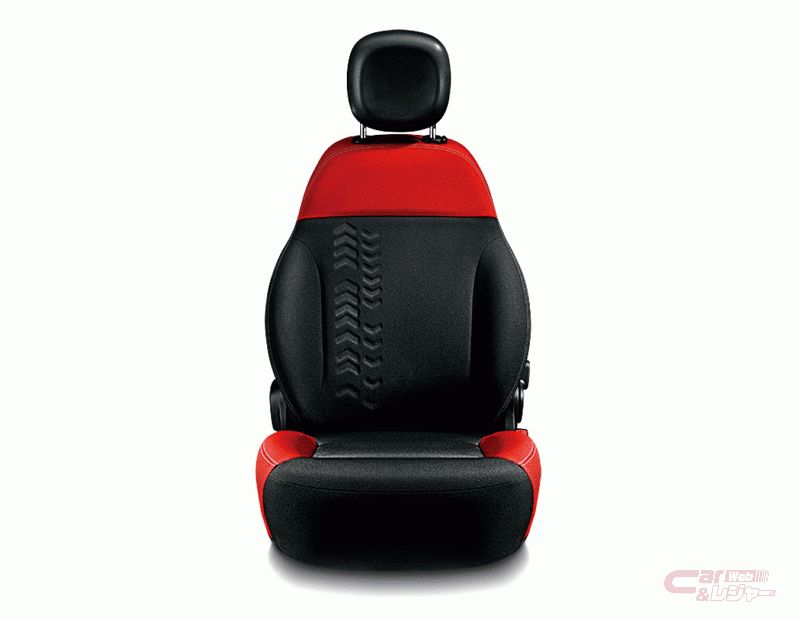 さらに、ベース車に比べ1インチ小さい14インチアルミホイール(タイヤサイズは175/65R14)を装備することで、乗り心地を向上したほか、ボディカラーには、通常は設定のないコロッセオグレー(メタリックグレー)を採用。車内はブラック/レッドの2トーンシート・インテリアを設定した。