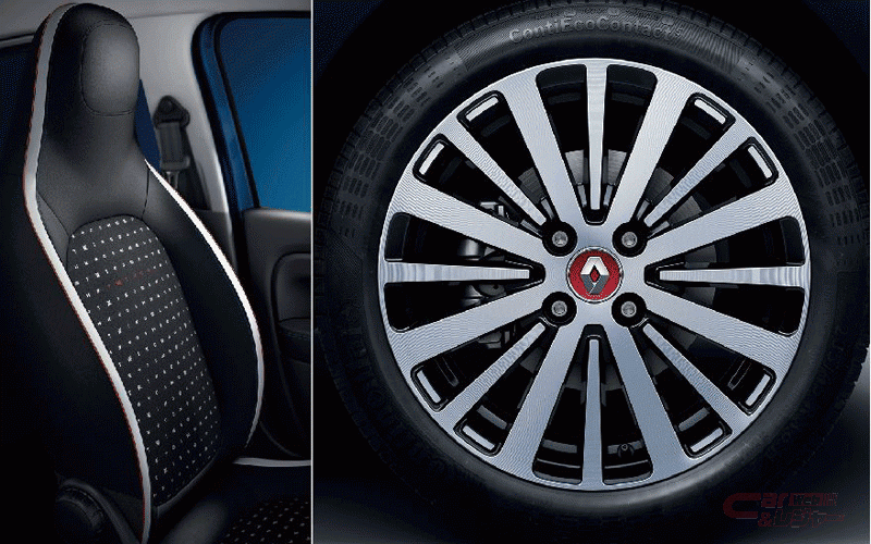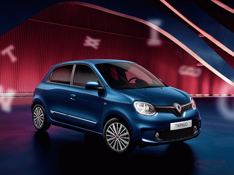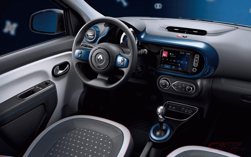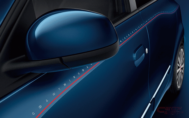 今回発売される「トゥインゴ シグネチャー」は、「トゥインゴ(TWINGO)」の名前の由来となった 3 つの言葉「TWIst」「sWINg」「tanGO」に着想を得たタイポグラフィーを、専用サイドストライプ、シート、キッキングプレートに散りばめた特別仕様車。